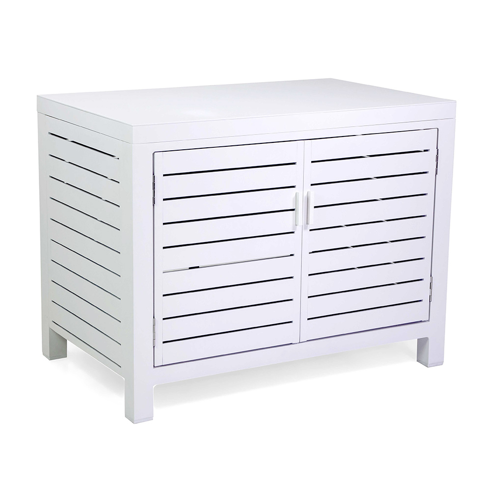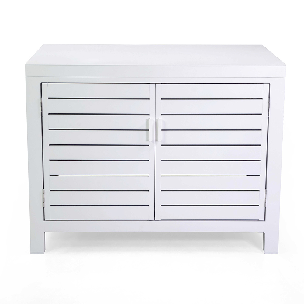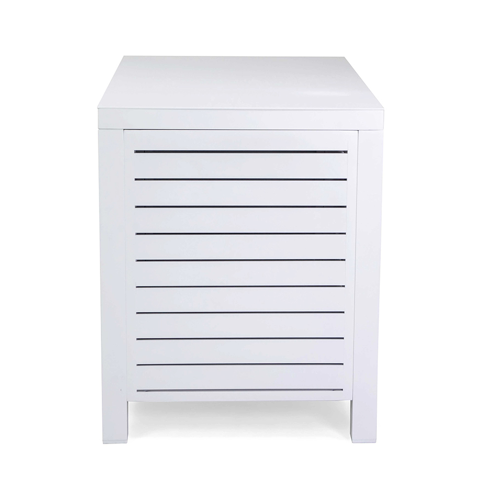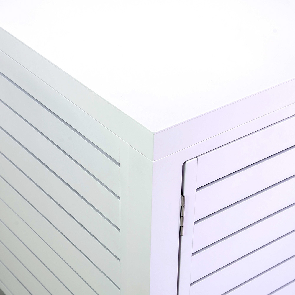 Shtoni një prekje elegance moderne në hapësirën tuaj të jashtme me këtë kabinet të sofistikuar prej alumini , i cili do të përshtatet në mënyrë të përkryer në çdo ambient të jashtëm. Dizajni me shirita të pastër krijon një efekt vizual tërheqës, duke e bërë atë një element qendror funksional dhe dekorativ.