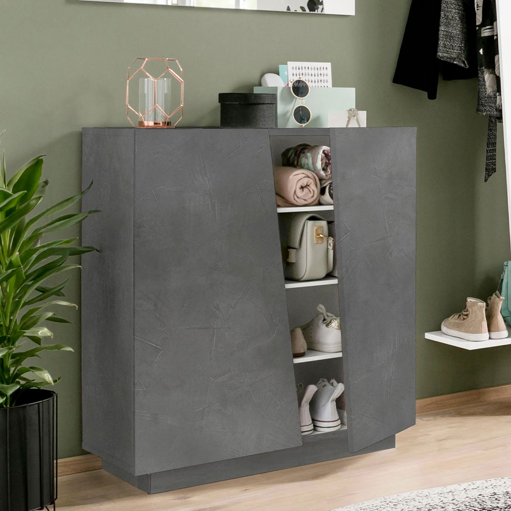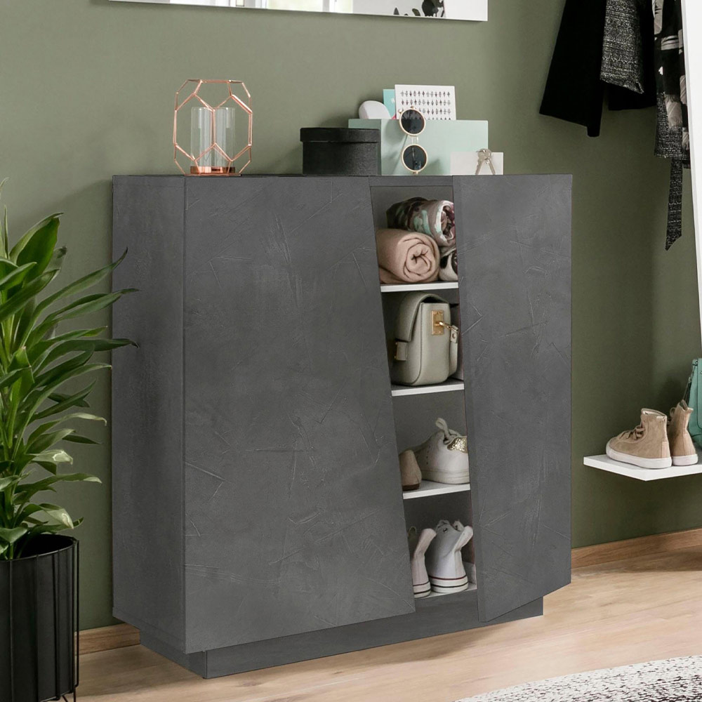 Dollap këpucësh prej druri melamine të qëndrueshëm me 2 dyer dhe 2 finitura, prodhim Itali.