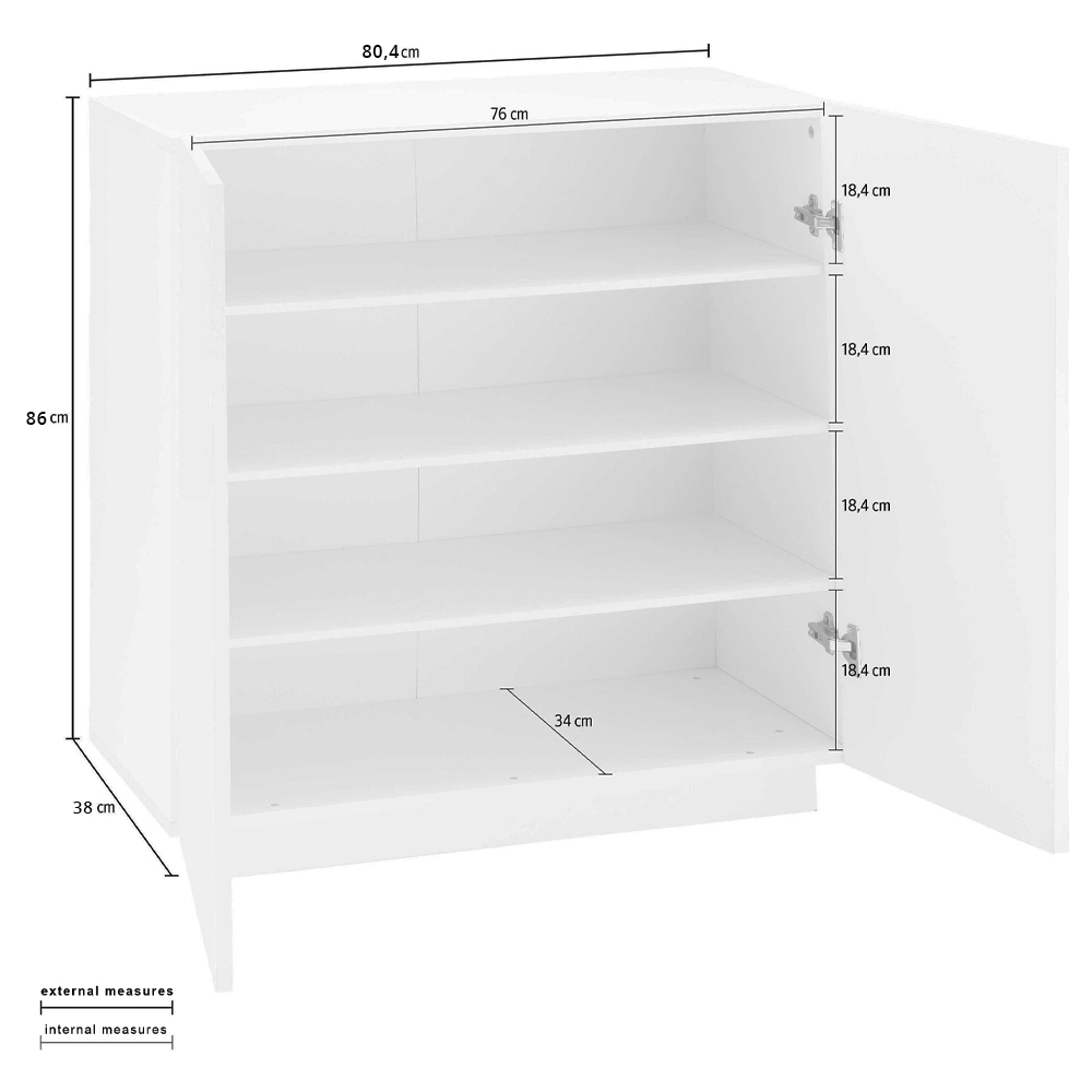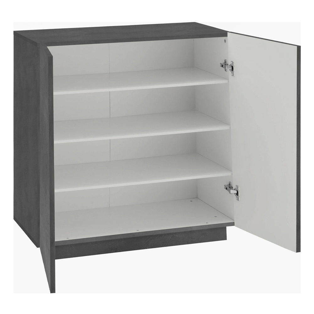 Kabineti i këpucëve karakterizohet nga dizajni i tij me 2 dyer të pjerrëta me linja të pastra dhe bashkëkohore të disponueshme në dy finitura. Per tu vendosur ne korridor ose ne ambjentin e hyrjeseshte prej druri te qendrueshem melamine te forte dhe rezistente.