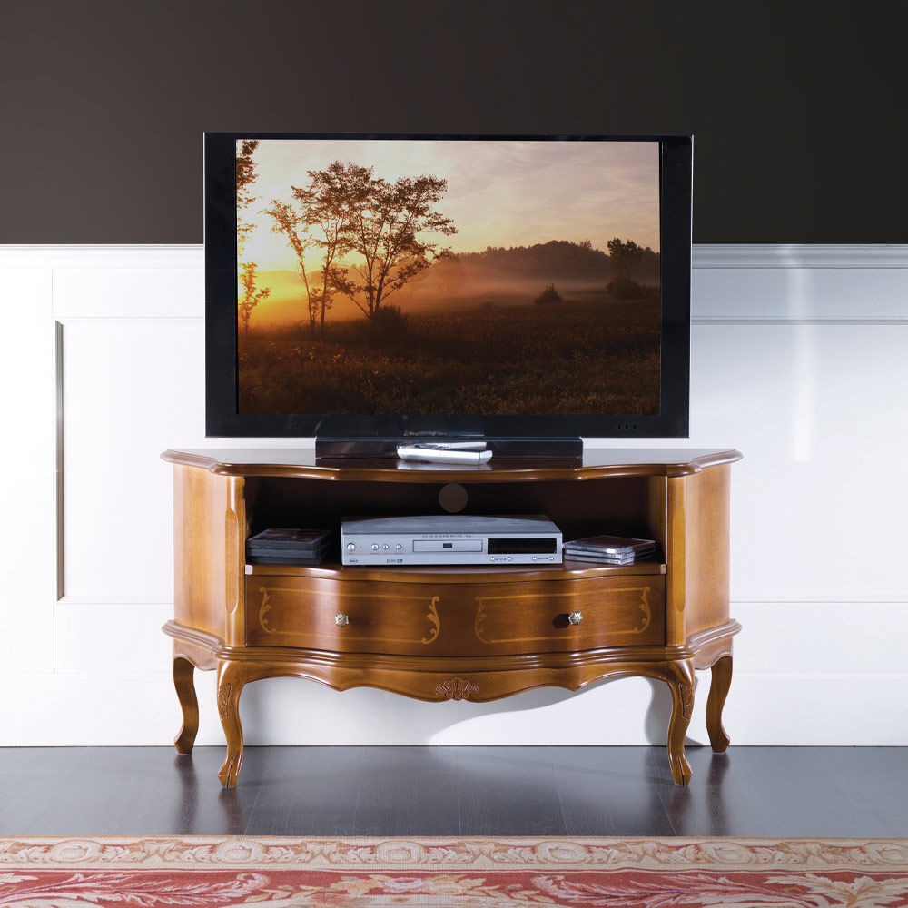 Mbajtëse televizori me stil klasik, e kompletuar me sirtar dhe ndarje praktike, e bërë tërësisht prej druri me një sipërfaqe arre të zbukuruar, perfekte për të mobiluar me elegancë çdo zonë ndenjeje. Një aksesor unik dhe i rafinuar, i prodhuar tërësisht në Itali nga mjeshtra artizanë të aftë , mjeshtra të artit që e përfundojnë çdo copë me aftësi dhe shije elegance. Prodhimi kryhet duke përdorur materiale me cilësi të lartë , dhe puna kryhet medorë me kujdesin dhe profesionalizmin maksimal që dallon produktet Made in Italy .