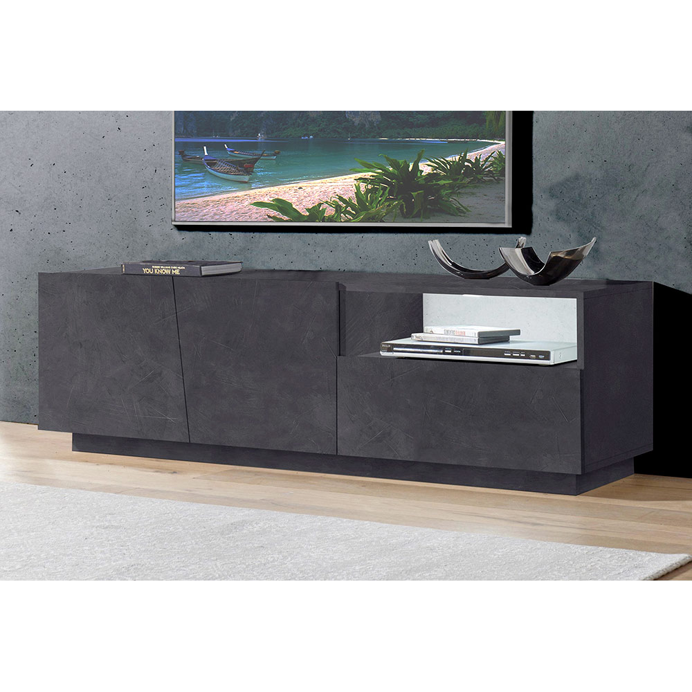 Mbështetja e televizorit përbëhet nga 2 dyer me varëse, një sirtar dhe një ndarje e hapur që garantojnë shumë hapësirë ruajtëse. Është prej melamine dhe është 100% Prodhuar në Itali . Ky produkt është i përshtatshëm për të kompletuar dekorimin e çdo zone ndenjeje falë përfundimeve të thjeshta dhe elegante që i japin dhomës një prekje unike dhe të paharrueshme. Materiali i përdorur garanton cilësi dhe rezistencë edhe me kalimin e kohës.