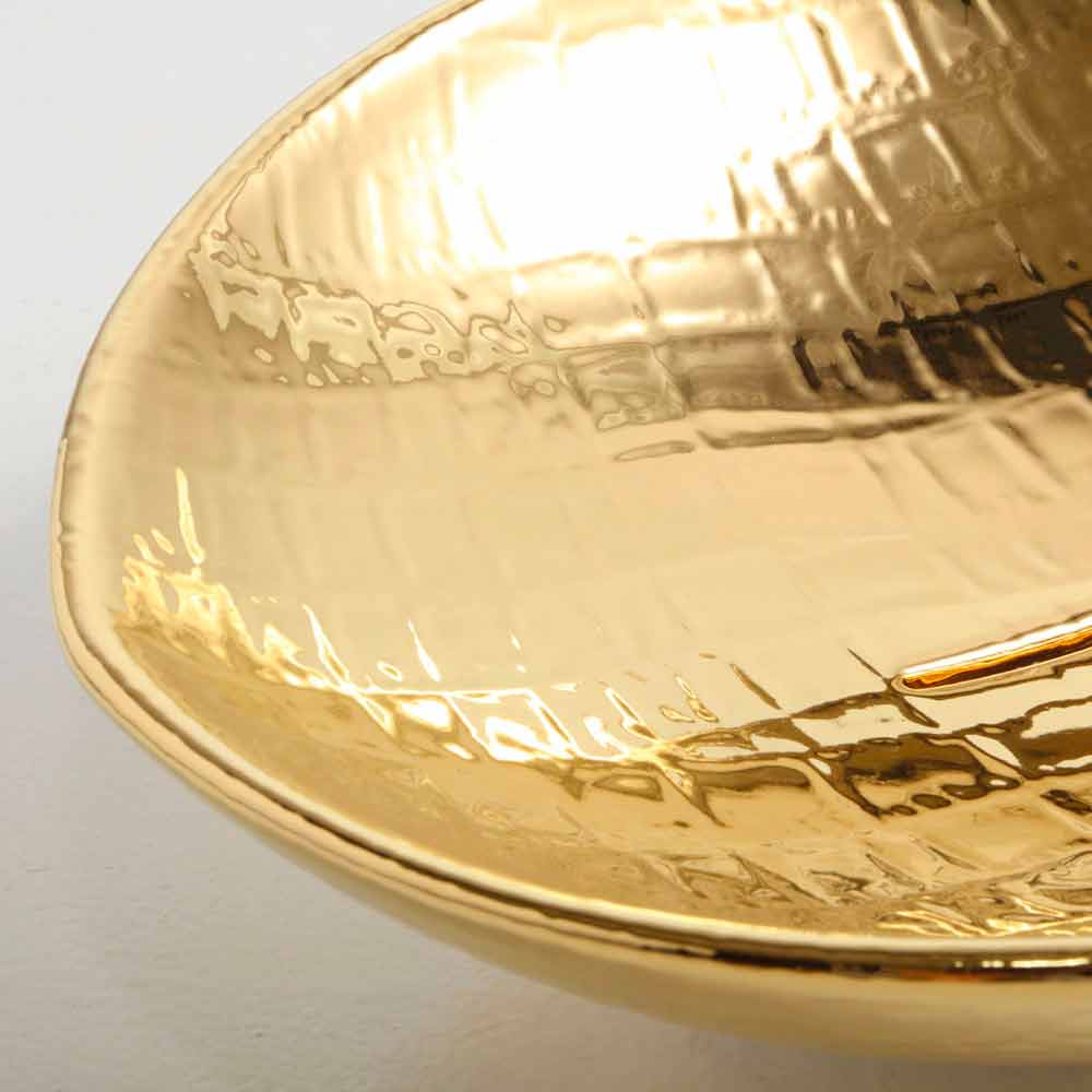 Dizajnoni lavamanin e tavolinës në qeramikë ari të prodhuar në Kafshët e Italisë Lavaman ose "legen" me formë të parregullt, që të kujton një seksion bajame, të pajisur me një kullim të vazhdueshëm uji. Ky lavaman mund të personalizohet duke zgjedhur midis përfundimeve dhe dekorimeve të ndryshme: për të kërkuar informacion dhe / ose një kuotë të personalizuar, shkruani në clienti@viadurini.it.