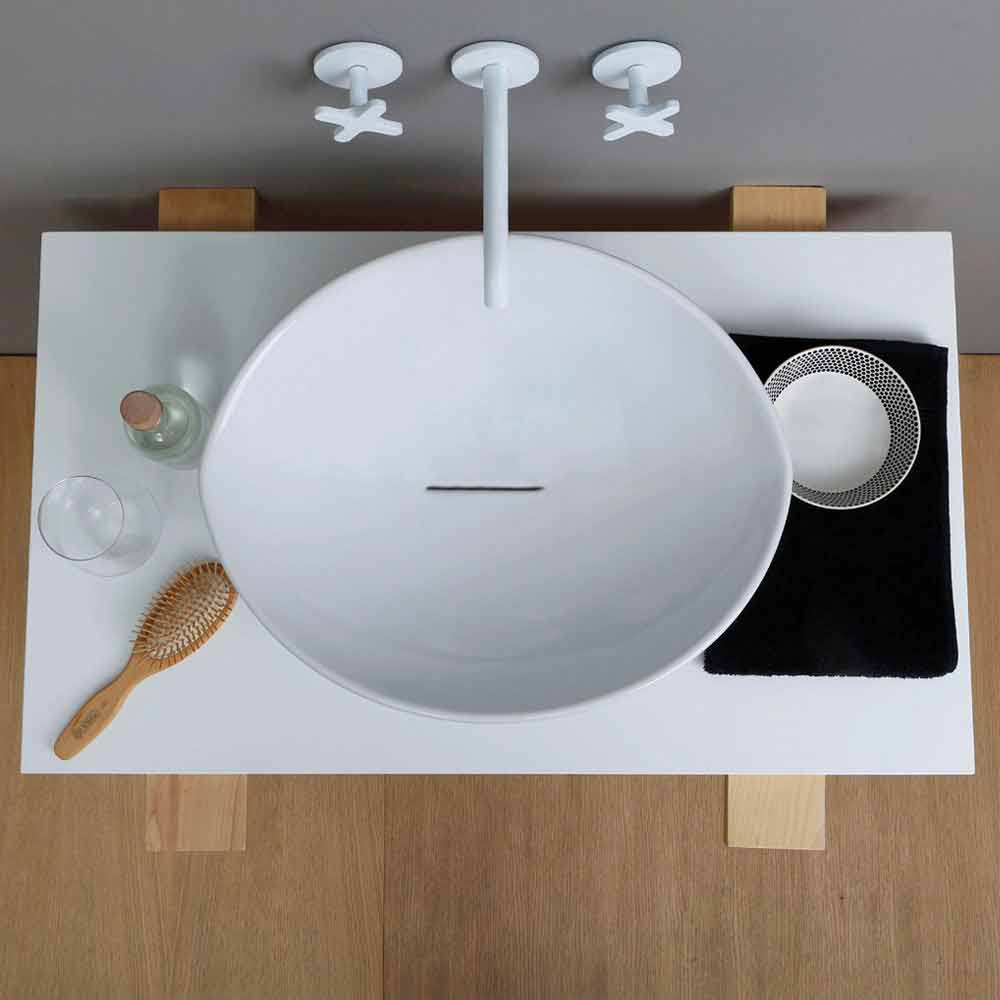 Lavaman banje me dizajn të modës në prodhimin e kafshëve prej qeramike të bëra nga Italia Lavaman ose "legen" me formë të parregullt, që të kujton një seksion bajame, të pajisur me një kullim të vazhdueshëm uji. Ky lavaman mund të personalizohet duke zgjedhur midis përfundimeve dhe dekorimeve të ndryshme: për të kërkuar informacion dhe / ose një kuotë të personalizuar, shkruani në clienti@viadurini.it.
