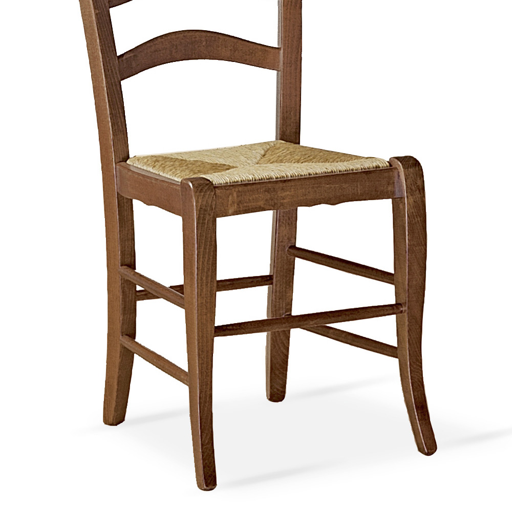 Karrige moderne për ambjente të brendshme me strukturë ahu me njolla arre dhe ulur bërë prej kashte.
