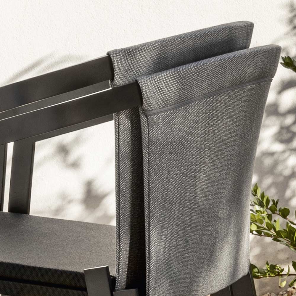 Koleksioni karakterizohet nga detajet e këmbës së aluminit si një pikë fokale e kombinuar me ashpërsinë formale dhe modulare të mbushjes, për të përjetuar jashtë për sa i përket relaksimit dhe shoqërimit maksimal, të ulur në divan, rreth një tavoline ose të shtrirë në shezlong .