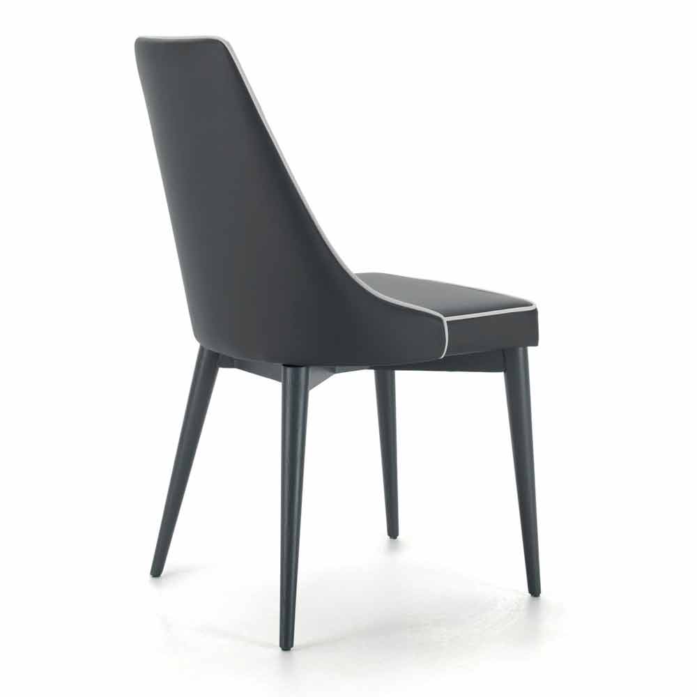 Karrige luksoze e mbushur me bazë çeliku grafit dhe sedilje eko-lëkurë me tubacione të bardha; punuar me dorë në Itali.