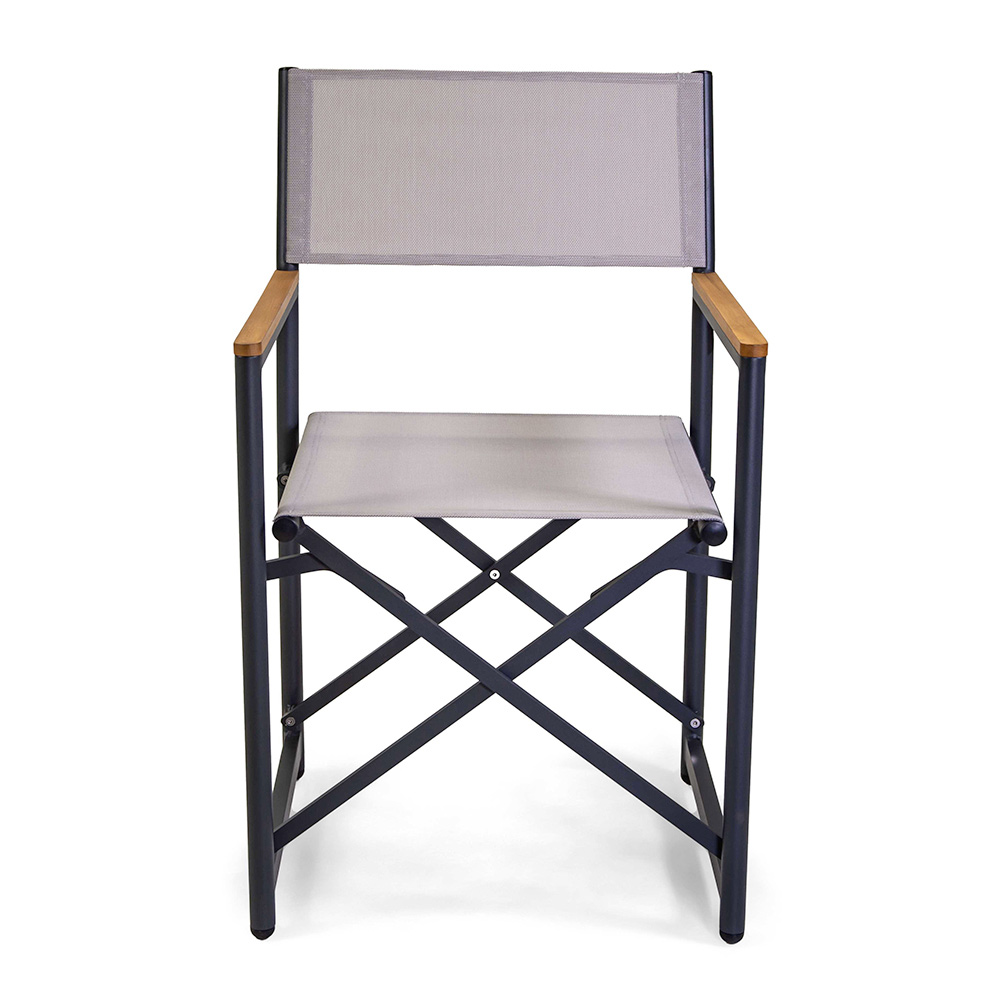 Kjo karrige kombinon funksionalitetin dhe stilin në një dizajn unik, ideal për të plotësuar çdo ambient modern të brendshëm ose të jashtëm. Korniza e fortë e aluminit e veshur me pluhur siguron qëndrueshmëri dhe qëndrueshmëri, ndërsa përfundimet e drurit të tik në mbështetëse të krahëve shtojnë një prekje elegance natyrore. Sedilja dhe mbështetësja prej tekstili ofrojnë rehati dhe mbështetje, duke e bërë karrigen perfekte për orë të gjata relaksi ose bisede. Falë dizajnit të saj kompakt , kjo karrige është opsioni ideal për ata që kërkojnë shkathtësi dhe stil pa sakrifikuar hapësirë. Elegant, praktik dhe i qëndrueshëm, është zgjedhja perfekte për çdo rast.