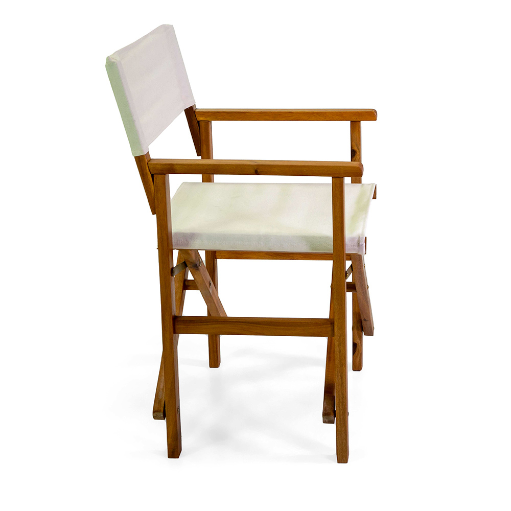 Zbuloni karrigen e regjisorit prej druri , e cila kombinon funksionalitetin dhe prakticitetin elegant për rehati të përjetshme. Kjo pjesë klasike e mobiljeve, e punuar me një kornizë të fortë druri, përmban mbështetëse të lëmuara për krahët dhe një sedilje dhe mbështetëse prej pëlhure , duke ofruar rehati dhe mbështetje maksimale.
