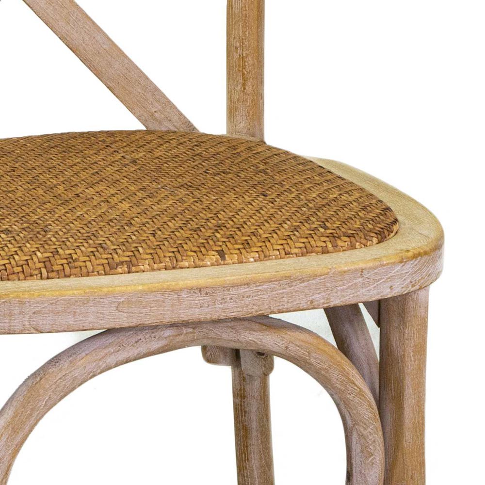 Mbështetësja e shpinës në formë kryqi me vija të përdredhura dhe sedilja e konturuar garantojnë rehati maksimale gjatë përdorimit, duke e bërë atë një zgjedhje ideale për dhomat e ngrënies , kuzhinat ose ambientet me kontratë si restorantet dhe bistrot simpatike. Përfundimi i drurit natyral nxjerr në pah teksturën e ngrohtë dhe kokrrën unike të materialit, duke shtuar një prekje mirëseardhjeje dhe autenticiteti .