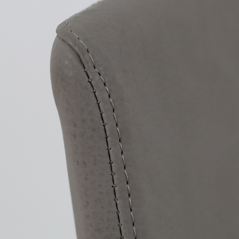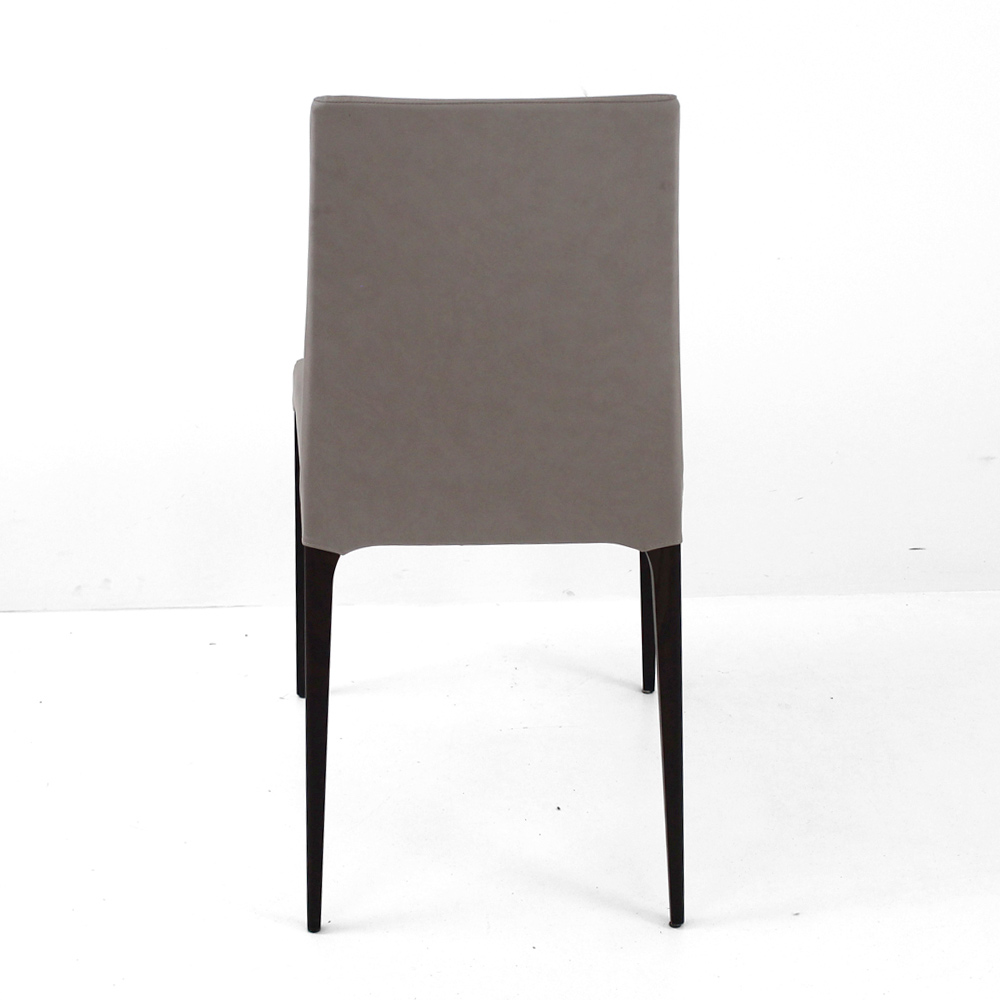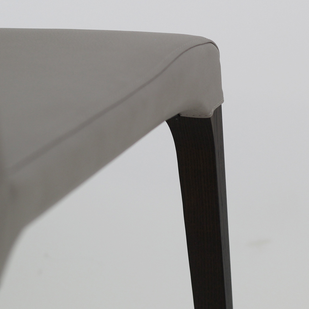 Karrige e ngrënies tërësisht e prodhuar në Itali me strukturë druri hiri me njolla arre tëerrët dhe sedilje lëkure gri. Karrige me një hijeshi të përjetshme, kombinon elegancën e drurit dhe sqimën e lëkurës imituese, duke krijuar një riinterpretim modern, perfekt për të arreduar çdo ambient jetese. Është ideal për përdorim shtëpiak dhe me kontratë falë përfundimeve të thjeshta dhe lineare. Materialet e përdorura për ndërtimin garantojnë cilësi dhe rezistencë edhe me kalimin e kohës.