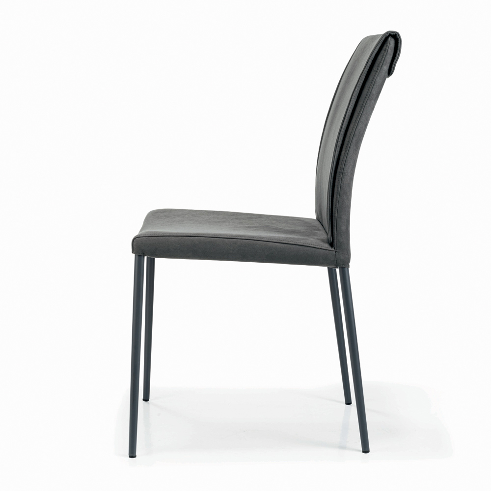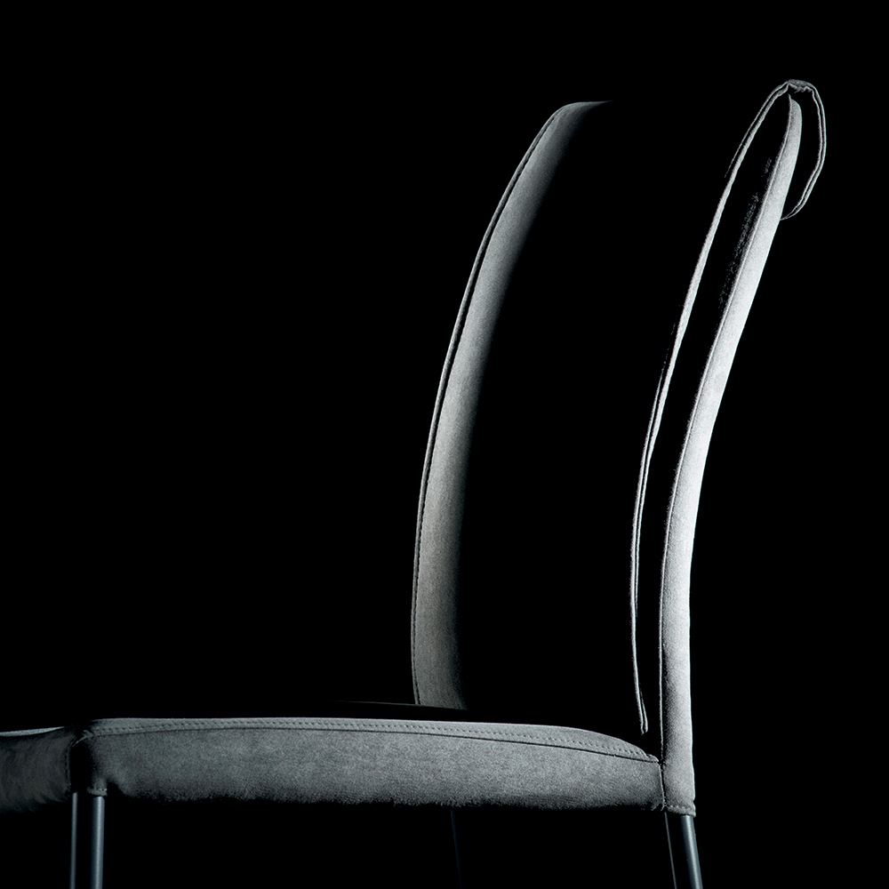 Karrige e dhomës së ndenjes e bërë me sedilje çeliku dhe kurriz të mbuluar plotësisht me pëlhurë dhe këmbë çeliku të llakuar. Përputhet lehtësisht me çdo stil dhe ndihmon në krijimin e një atmosfere unike dhe elegante . Dizajni i lehtë jo vetëm që i shton karakter hapësirave shtëpiake, si dhomat e ngrënies dhe kuzhinat, por është gjithashtu ideale për zona me kontratë , si bare dhe restorante, falë formës së tij të thjeshtë dhe të sofistikuar.