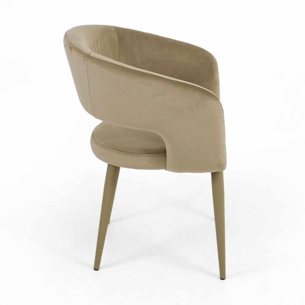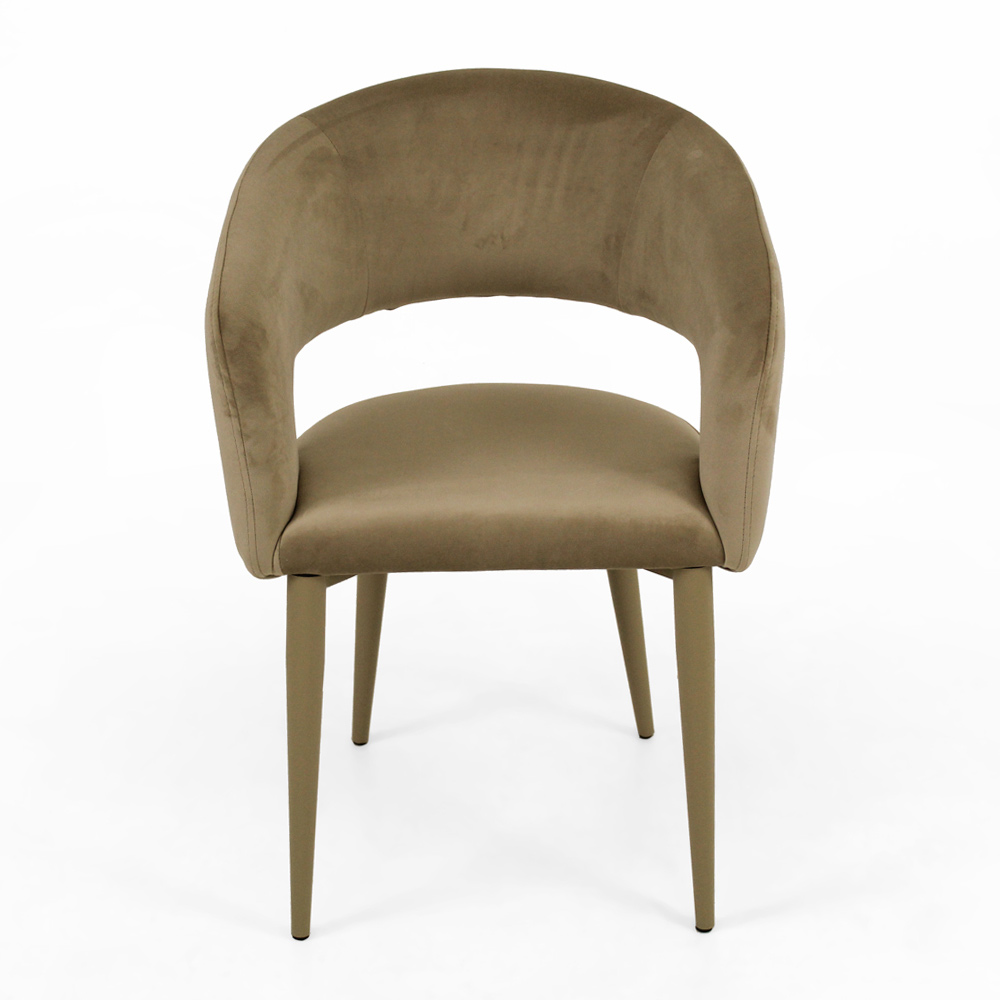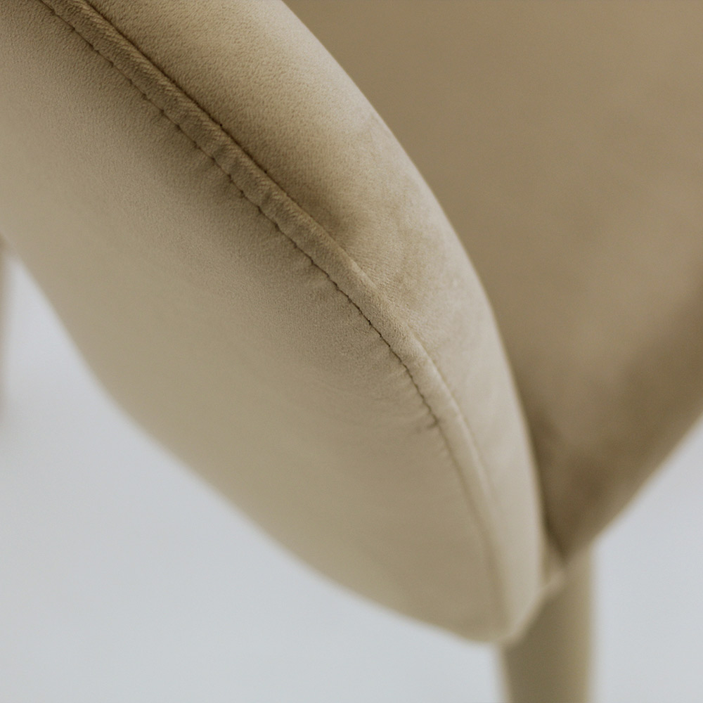Karrige e dhomës së ndenjes e bërë me strukturë çeliku e mbuluar tërësisht me kadife me fije litari dhe me bazë çeliku të lakuar me litar. Një aksesor mobilimi që përshtatet lehtësisht me çdo kontekst stilistik në të cilin është futur, duke ndihmuar në krijimin e një atmosfere unike dhe me klas . Lehtësia estetike që karakterizon dizajnin e tij e bën atë të përsosur për kompletimin e hapësirave shtëpiake si dhomat e ngrënies dhe kuzhinat, por edhe zona të kontraktuara si bare dhe restorante me personalitet nëpërmjet formave të tij të thjeshta dhe të rafinuara .