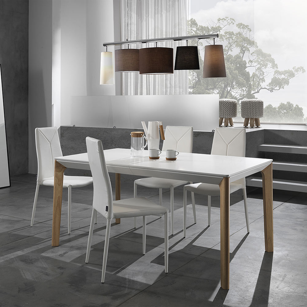 Karrige moderne e veshur tërësisht me lëkurë sintetike perfekte për dhomën e ngrënies ose kuzhinën e karakterizuar nga një dizajn elegant dhe i rafinuar që i jep komoditet dhe personalitet dhomës. Falë mundësisë së grumbullimit të tyre, këto karrige fitojnë akoma më shumë funksionalitet duke u bërë një zgjidhje ideale për çdo nevojë. Stili i tij thelbësor përzihet në mënyrë të përkryer me çdo kontekst arredimi, duke e pasuruar atë përmes karakterit të tij të rafinuar dhe shpirtit të tij romantik.