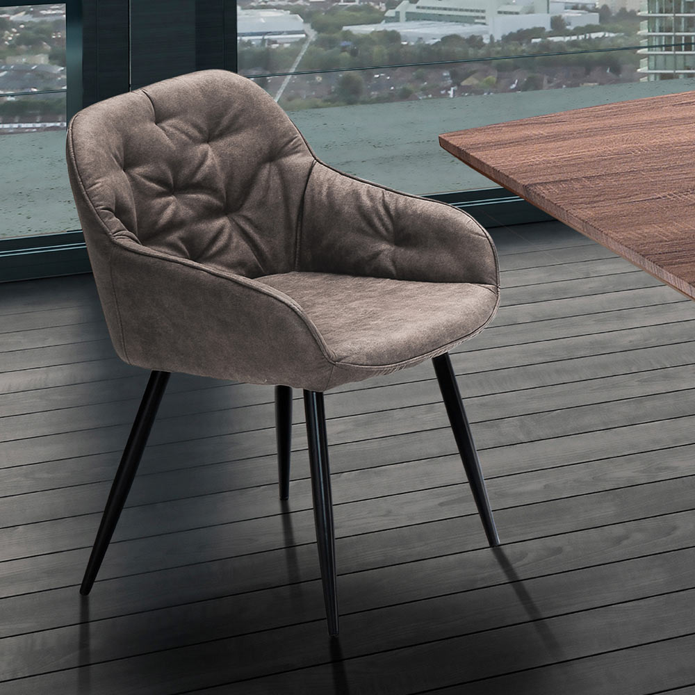 Karrige e dhomës së ngrënies me këmbë prej metali të lyer me ngjyrë të zezë mat dhe ndenjëse e mbushur me lëkurë sintetike të vjetëruar . Një aksesor mobilimi elegant dhe klas i karakterizuar nga mbështetësi i veçantë i pasuruar me qepje që i japin estetikës përfundimtare të karriges një efekt vintage dhe të rafinuar . Rezultati është një ndenjëse mikpritëse dhe e rehatshme që kontribuon në të njëjtën kohë për të kompletuar stilin e dhomës përmes personalitetit tësaj magjepsës dhe karakterit të saj të rafinuar.