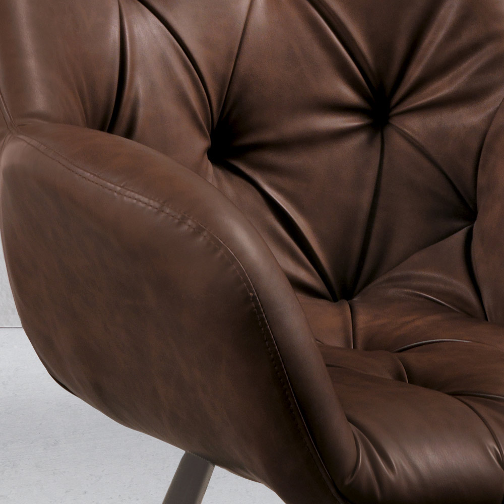 Karrige e dhomës së ndenjes me ndenjëse të veshur me eko -lëkurë dhe strukturë metalike të lyer me një dizajn ekskluziv dhe elegant . Rezultati është një zgjidhje e veçantë mobilimi që ndërthur funksionalitetin dhe shkathtësinë për të pajisur me personalitet hapësirat tuaja shtëpiake. Struktura e tij karakterizohet nga linja të holla dhe të lehta që e bëjnë atë të përsosur për të kompletuar arredimin e ambienteve në të cilat jep një prekje ekskluzive dhe të rafinuar duke siguruar një ndenjëse mikpritëse dhe komode .