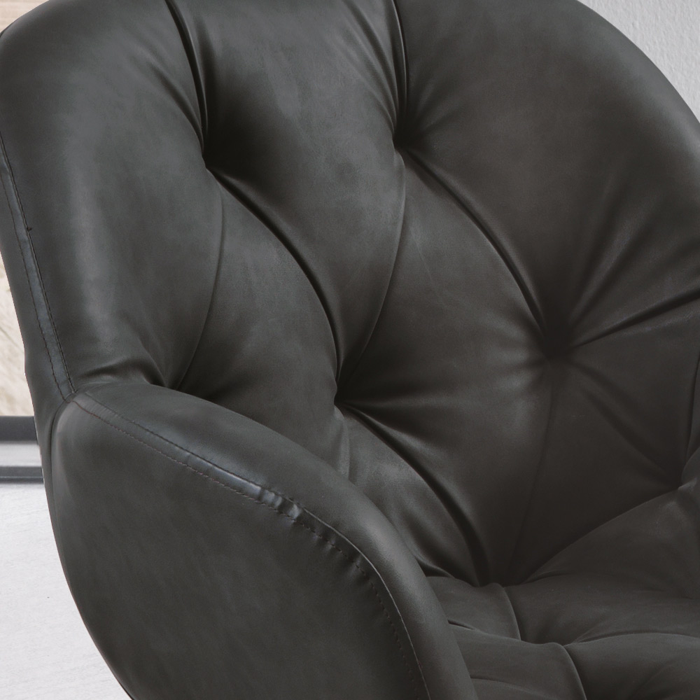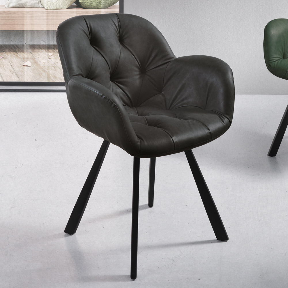 Karrige e dhomës së ndenjes me strukturë metalike të lyer dhe sedilje prej lëkure eko.