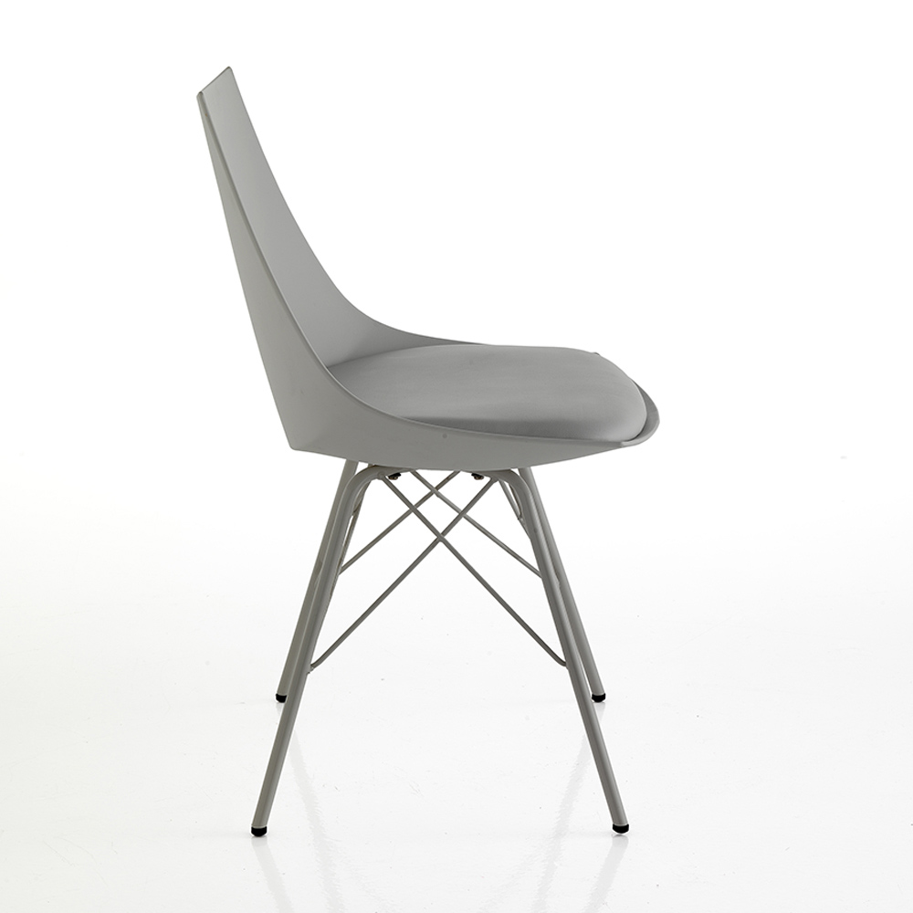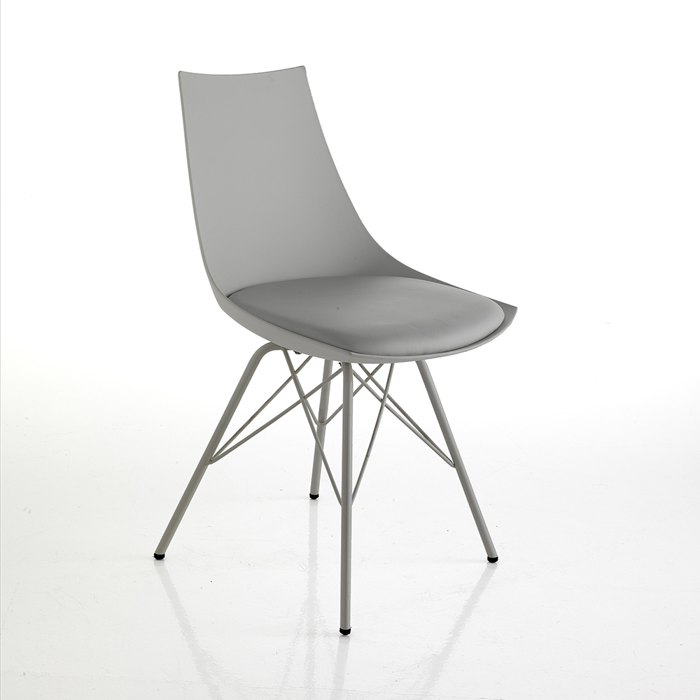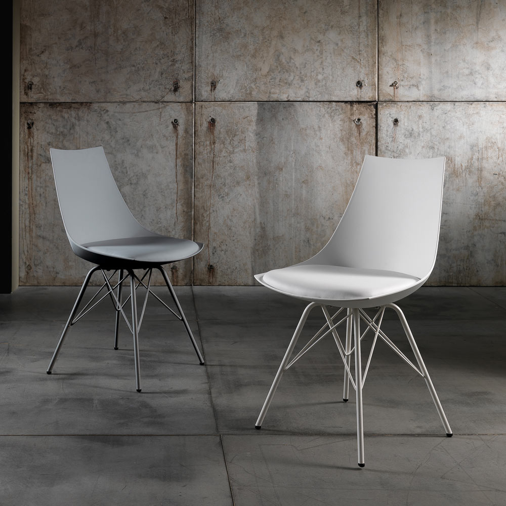 Karrige për dhomën e ngrënies ose kuzhinën me strukturë prej metali të lyer me shkëlqim , guaskë në polipropilen opak dhe sedilje e mbushur me lëkurë sintetike . Një plotësues me një dizajn inovativ dhe të rafinuar, ideal për situata të arredimit modern që kërkojnë një prekje personaliteti .