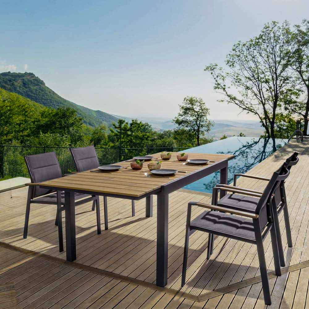 Karrige kopshti e grumbullueshme në alumin gri antracit dhe dru tik - Aidan