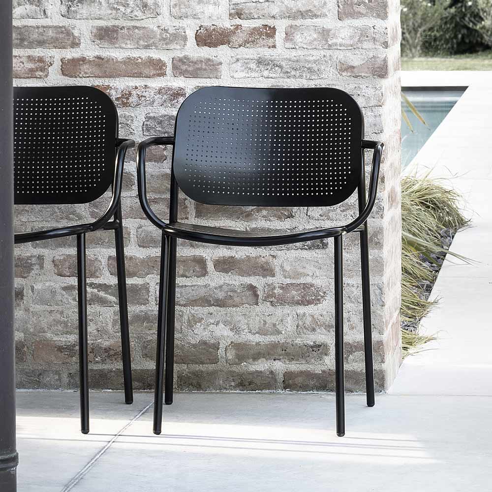 Gama e gjerë e ngjyrave të propozuara e bën atë një karrige veçanërisht të gjithanshme, ideale për të dekoruar hapësirat tuaja të jashtme me stilin unik që e dallon atë. Mundësia e grumbullimit thekson gjithashtu anën e saj funksionale dhe e bën atë një zgjidhje perfekte edhe për ambientet me kontratë si baret dhe restorantet ku është thelbësore të jeni në gjendje të optimizoni hapësirat kur karriget nuk janë në përdorim.
