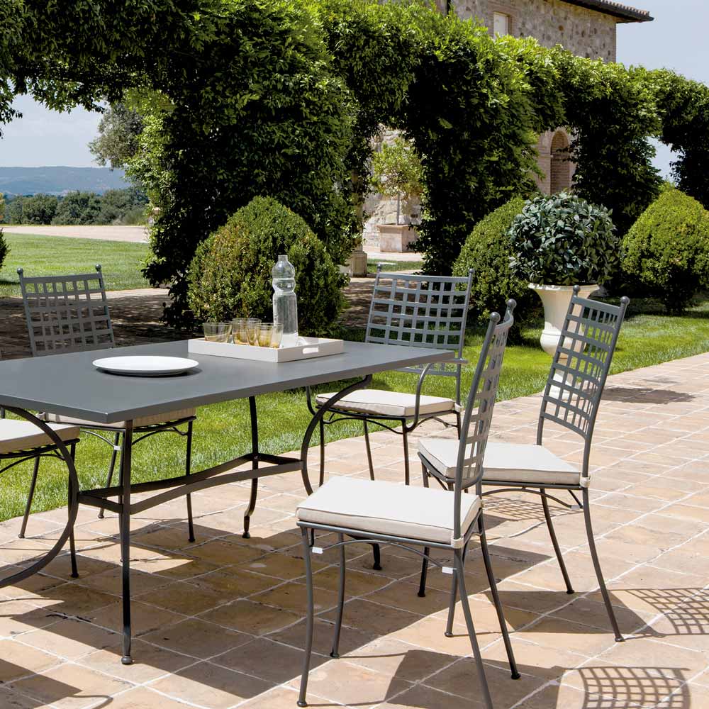 Këto karrige për jashtë janë projektuar të jenë jashtëzakonisht rezistente falë cilësisë së materialeve të tyre, në fakt ato janë prodhuar 100% në Itali . Struktura e tyre prej çeliku është e përforcuar nga një proces galvanizimi për t'i bërë ato rezistente ndaj agjentëve gërryes dhe atmosferikë . Struktura e tyre lejon, pasi të keni mbaruar së përdoruri, të kurseni hapësirë duke i vendosur të gjitha së bashku.