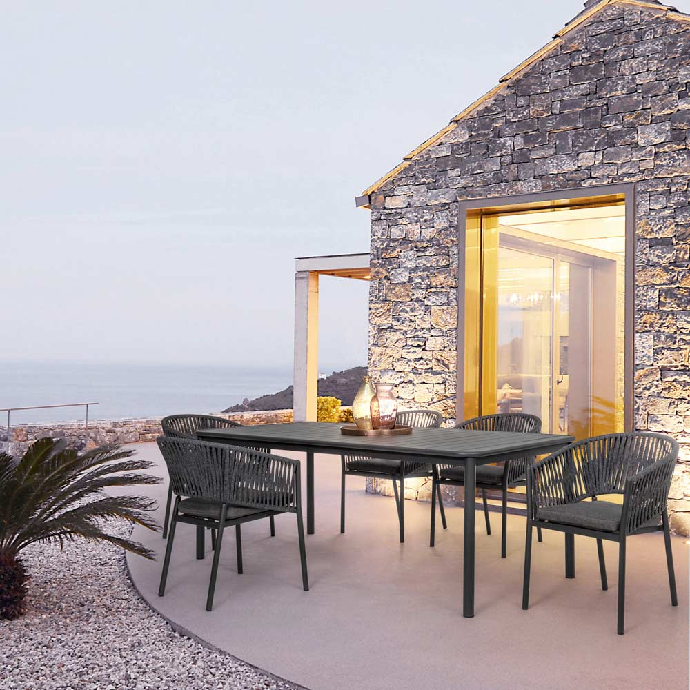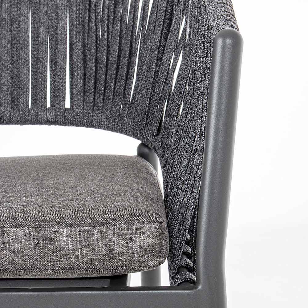 Struktura alumini e veshur me pluhur (poliester). Të endura me kordona Tetoron (100% poliester). Jastëk vendesh me mbulesë të lëvizshme me pëlhurë Olefin (100% polipropilen). Të grumbullueshme. Mobiljet në natyrë duhet të mendohen me vëmendje dhe kujdes. Zgjedhja duhet të bjerë mbi elementët cilësorë, të cilët sigurojnë qëndrueshmëri dhe funksionalitet, por që në të njëjtën kohë ofrojnë rehati dhe mirëqenie të pashembullt, për të shijuar më mirë jashtë. Kur këto aspekte kombinohen me një dizajn të rafinuar dhe inovativ, si ai që karakterizon këtë artikull, merret një rezultat unik.