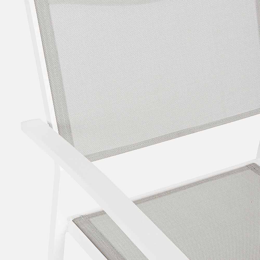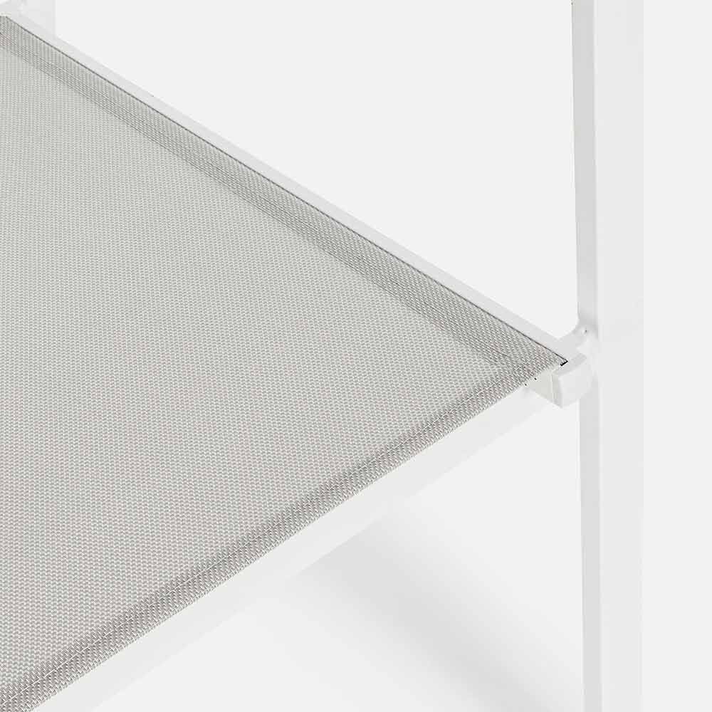 Kornizë alumini , e veshur me pluhur (poliester), sedilje dhe mbrapa në tekstil 2x1. Të grumbullueshme .