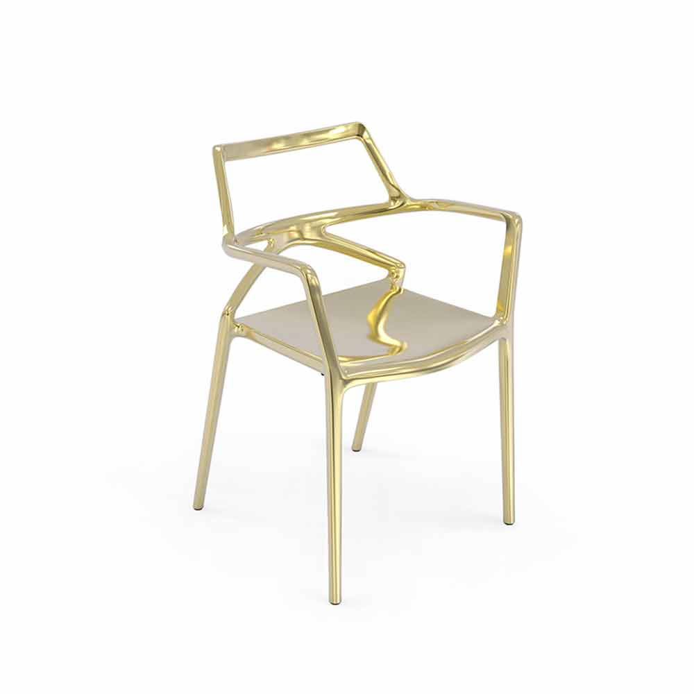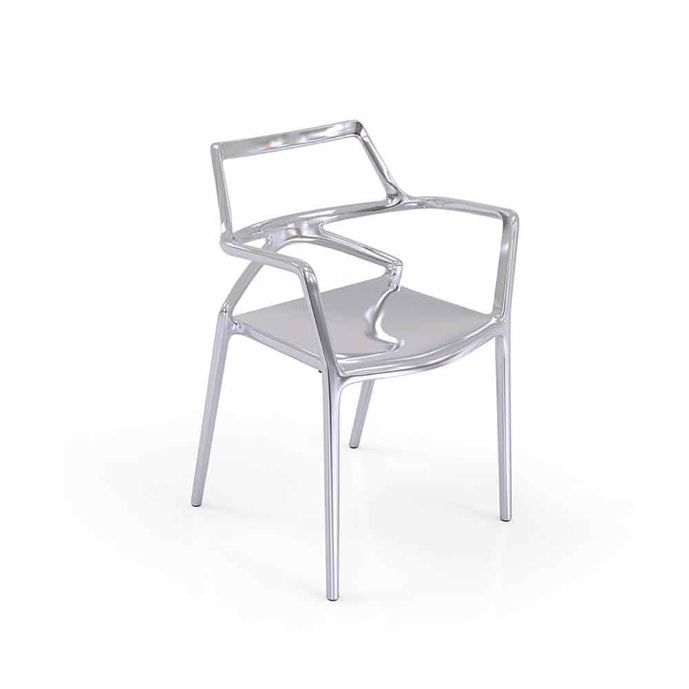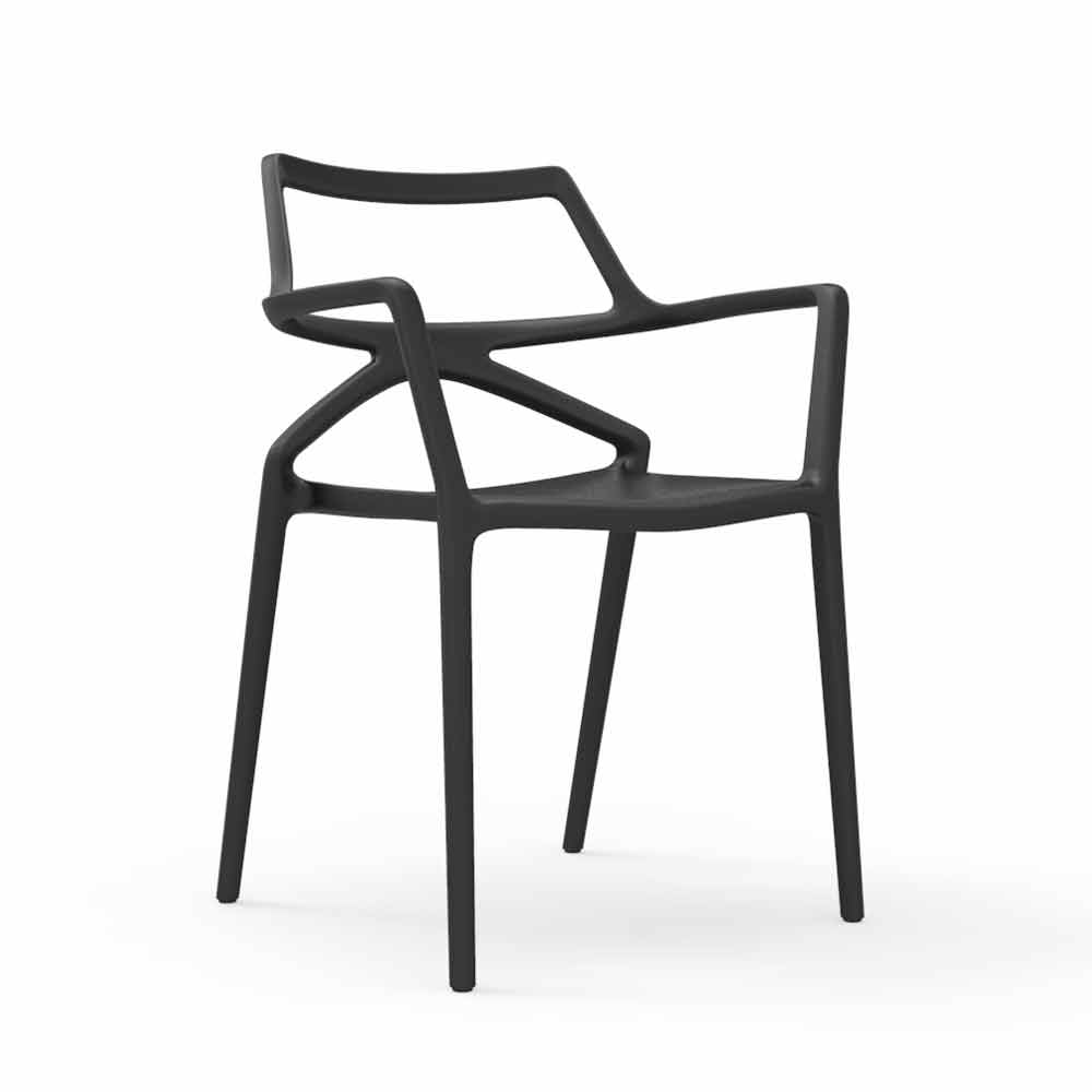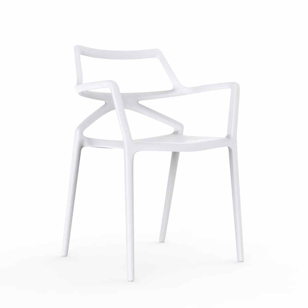 Karrige kopshti me polipropilen me dizajn modern Vondom Delta Karrige me mbështetëse armësh Delta nga Vondom e bërë me injeksion polipropileni të formuar me gaz të formuar në ajër dhe e përforcuar me tekstil me fije qelqi. Të grumbullueshme. Në dispozicion në ngjyra të ndryshme për të zgjedhur: e bardhë, e zezë, ari dhe argjendi.