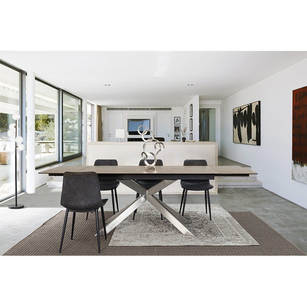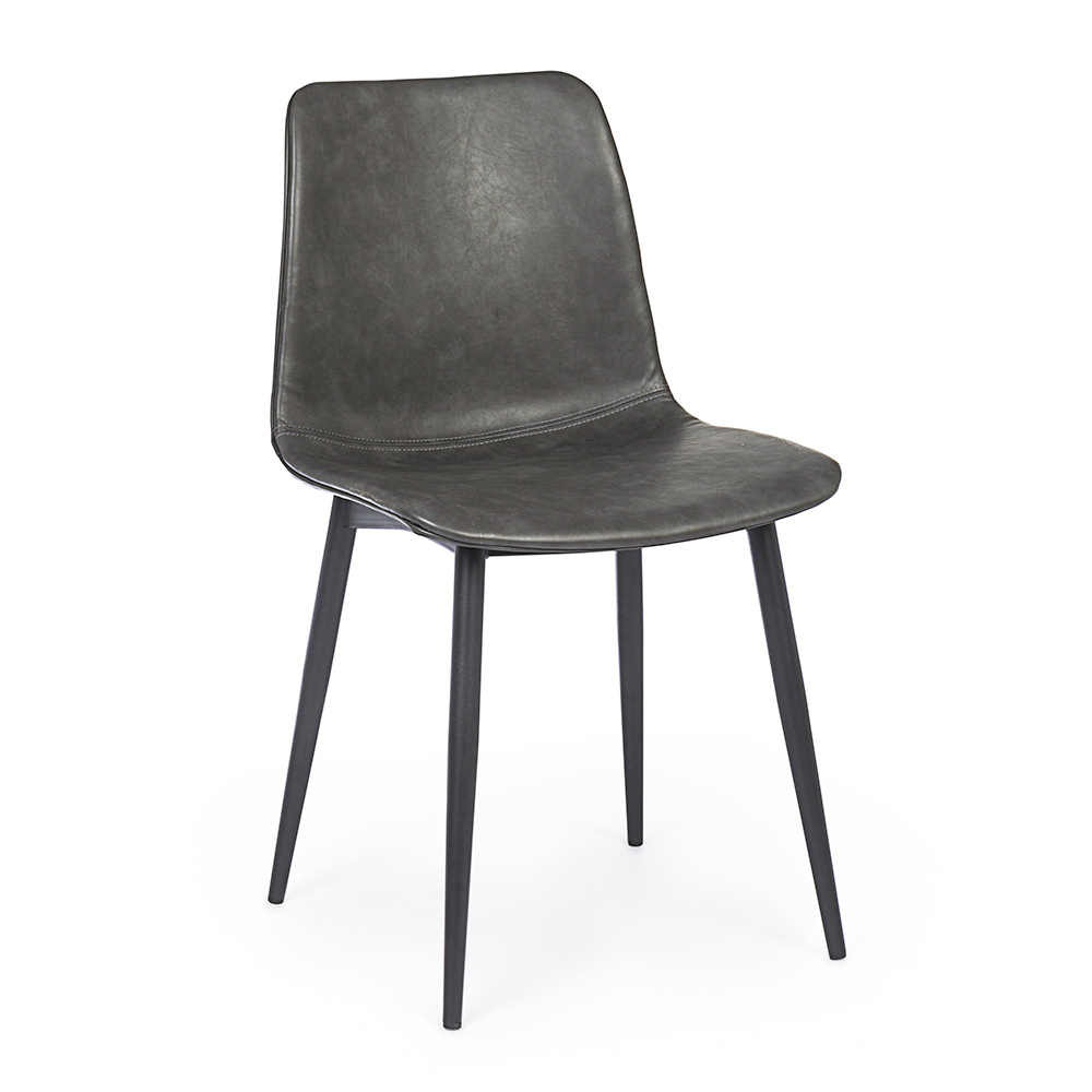 Karrige me dizajn vintage prej çeliku dhe sedilje eko-lëkure në 2 finitura, 2 copë.