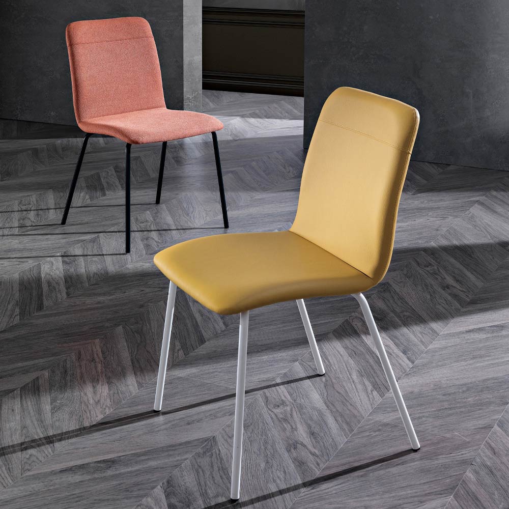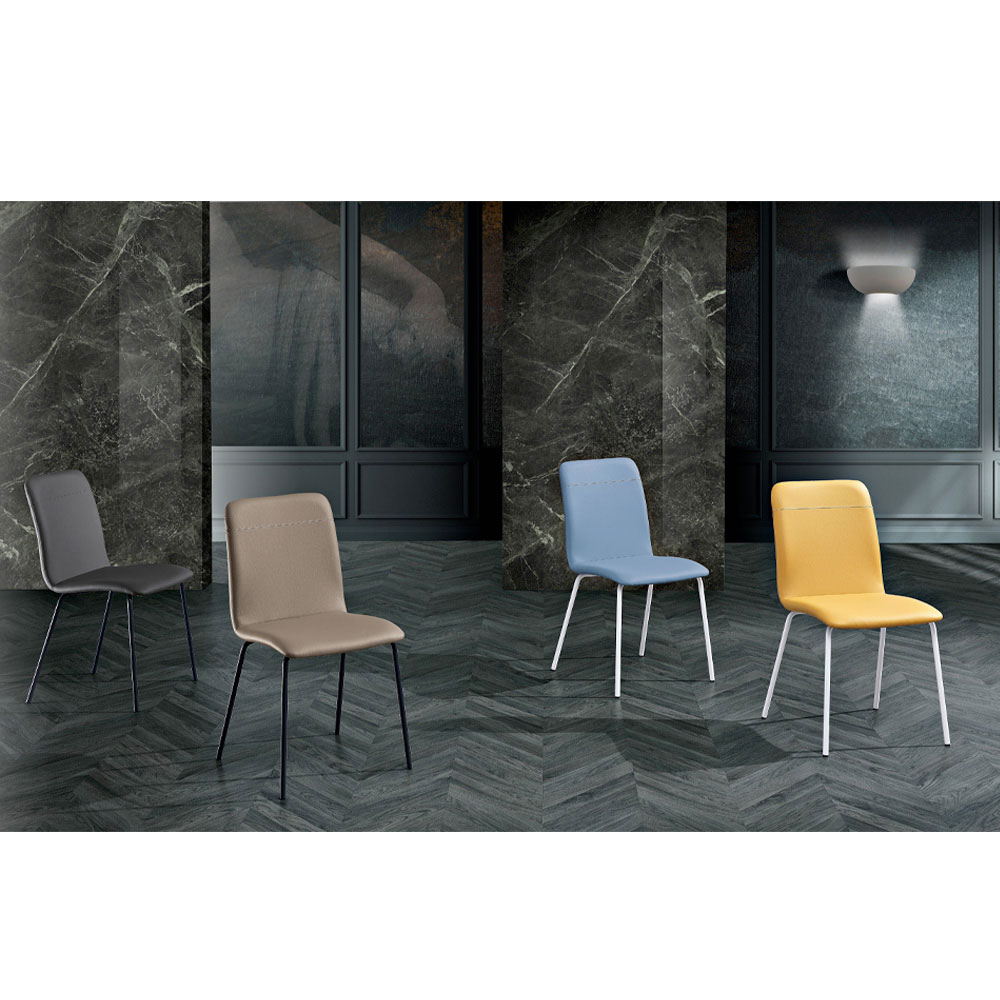 Transformoni kuzhinën ose dhomën tuaj të ngrënies në një hapësirë më komode dhe elegante me karrigen moderne monokoke me sedilje të mbuluar me Eko-lëkurë Yara kundër formës e disponueshme në variacione të ndryshme ngjyrash: