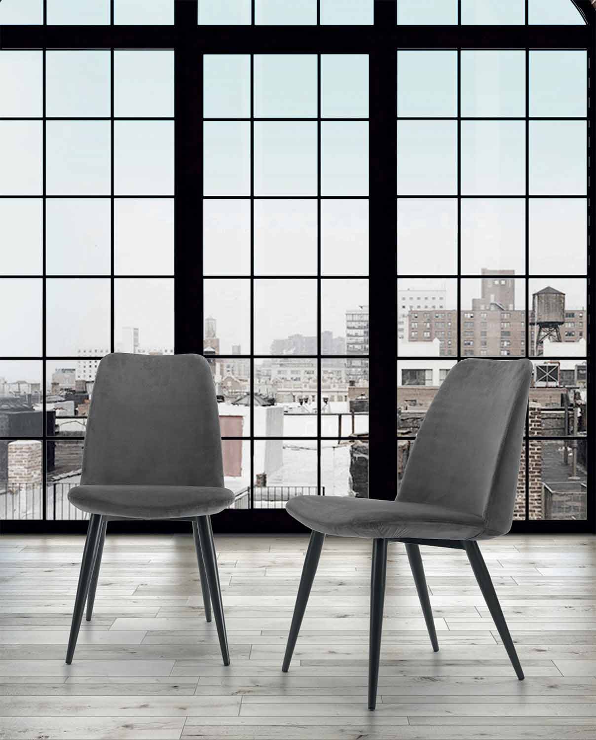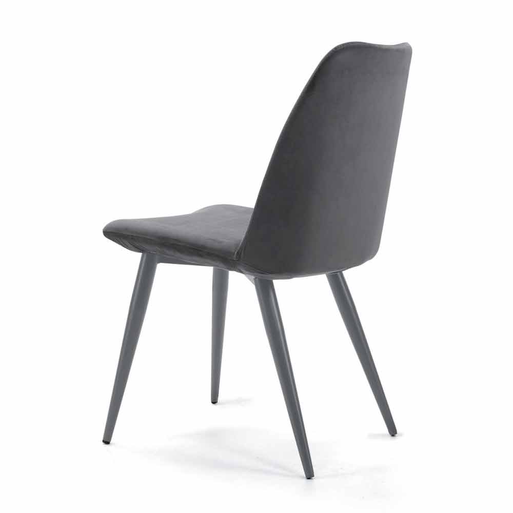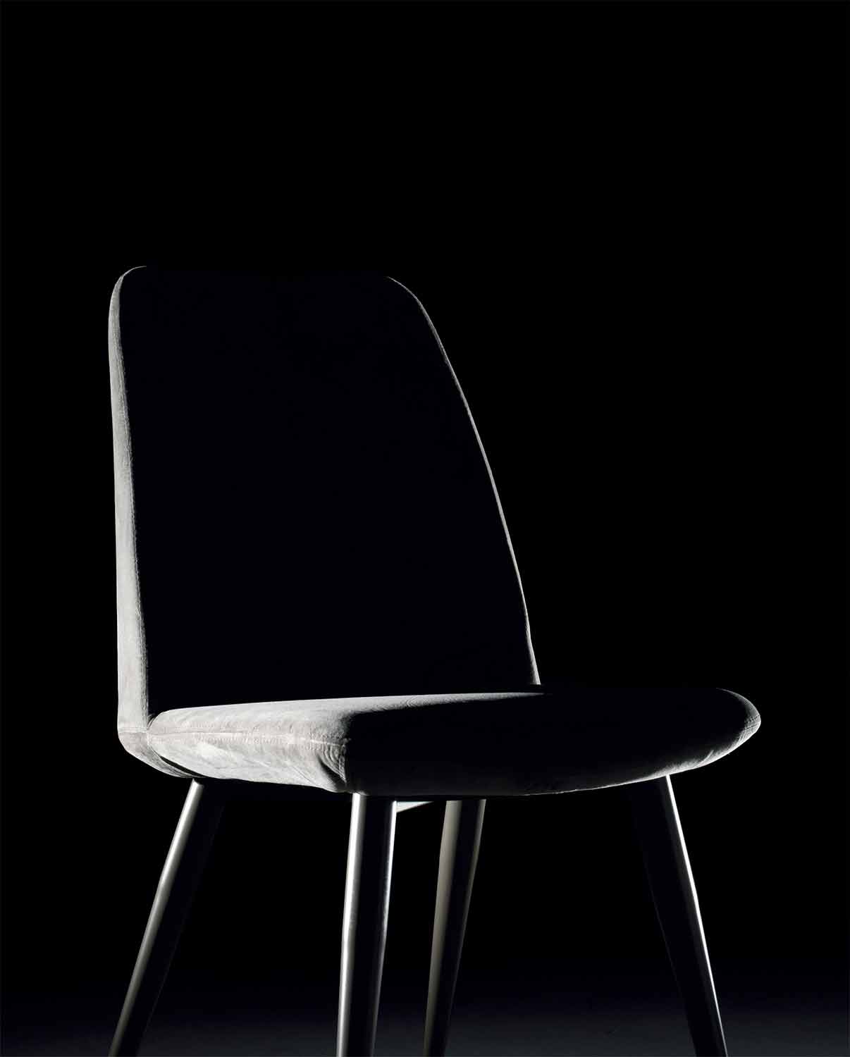 Karrige kuzhine me dizajn modern me bazë çeliku të lakuar me grafit dhe ndenjëse prej pëlhure, kadife ose lëkure; punuar me dorë në Itali.