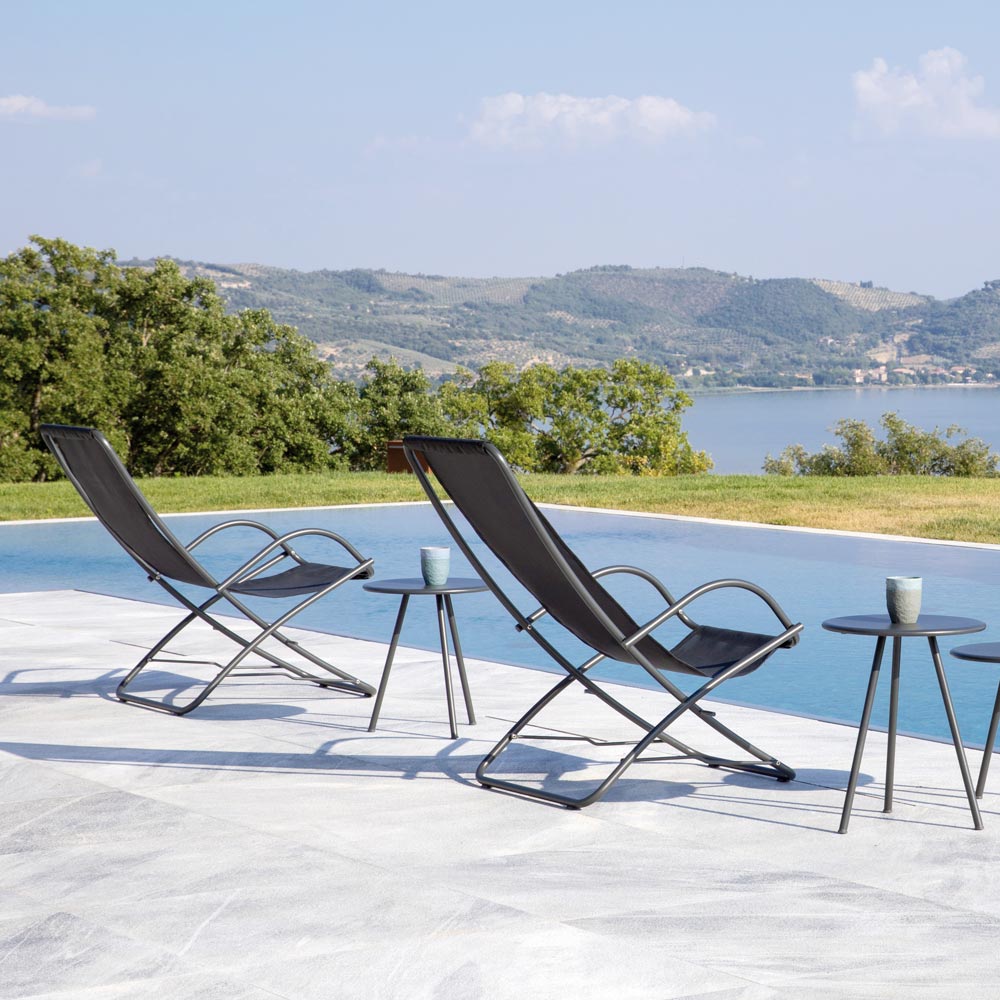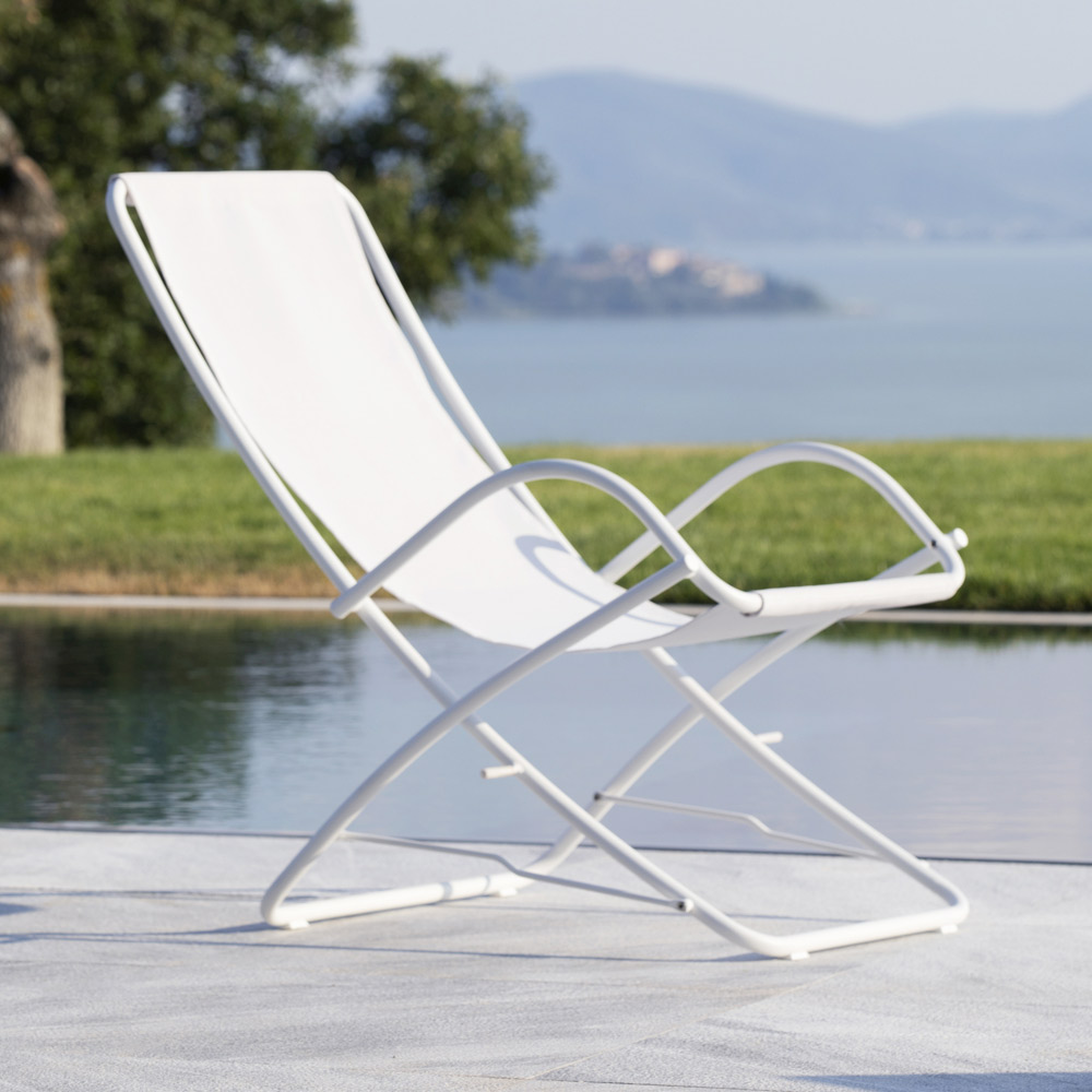 Karrige shezlongu e palosshme për jashtë, prej çeliku të galvanizuar, e prodhuar në Itali, 2 copë.