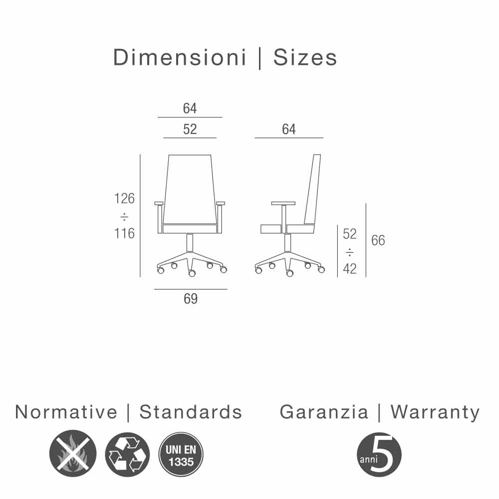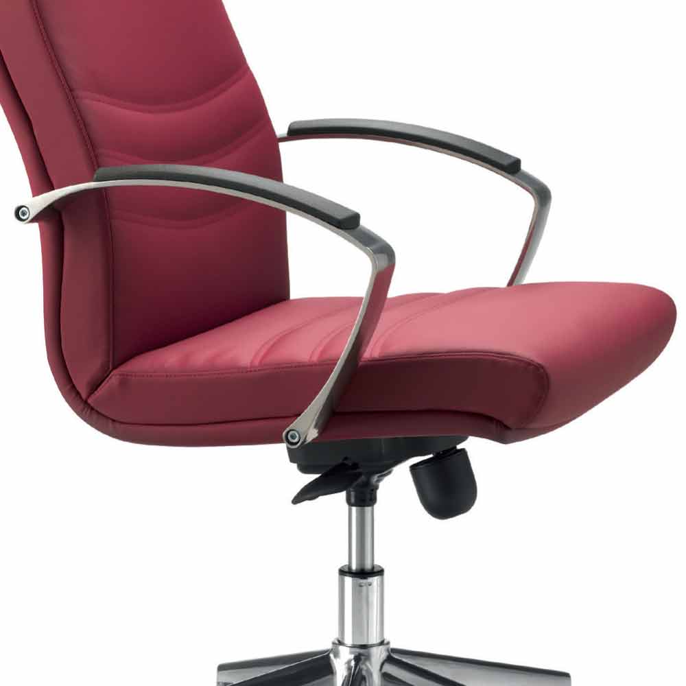 Karrige e plotë e zyrës së lëkurës me kokërr ekzekutive Debora, dizajn modern. Debora është një karrige ekzekutive e zyrës, e bërë në Itali. Karrige moderne monokok me presion, të formuar 14 mm të trasha me dru të ahut, me shumë shtresa. Paneli i tapicencës me shumë shtresa druri të ahut të shtypur, të formuar 6 mm, të mbushur me shkumë retardant zjarri, 50 mm të trasha, densitet 40 kg / m³ me një shtresë Dacron. Mbrapa armaturat poliuretani me futje çeliku. Forcat e çelikut, fund i kromuar, me majë të mbushur dhe të veshur me susta. Mekanizmi i pjerrësisë së pivotit përpara me 4 pozicione mbylljeje, rregullimi i tensionit me çelësin. Sistemi i bllokimit të pushimit nga prapa anti-goditje me anë të një butoni të integruar. Baza alumini me 5 yje të ngordhur me rrota castor najloni të vetë-frenimit, 65 mm.