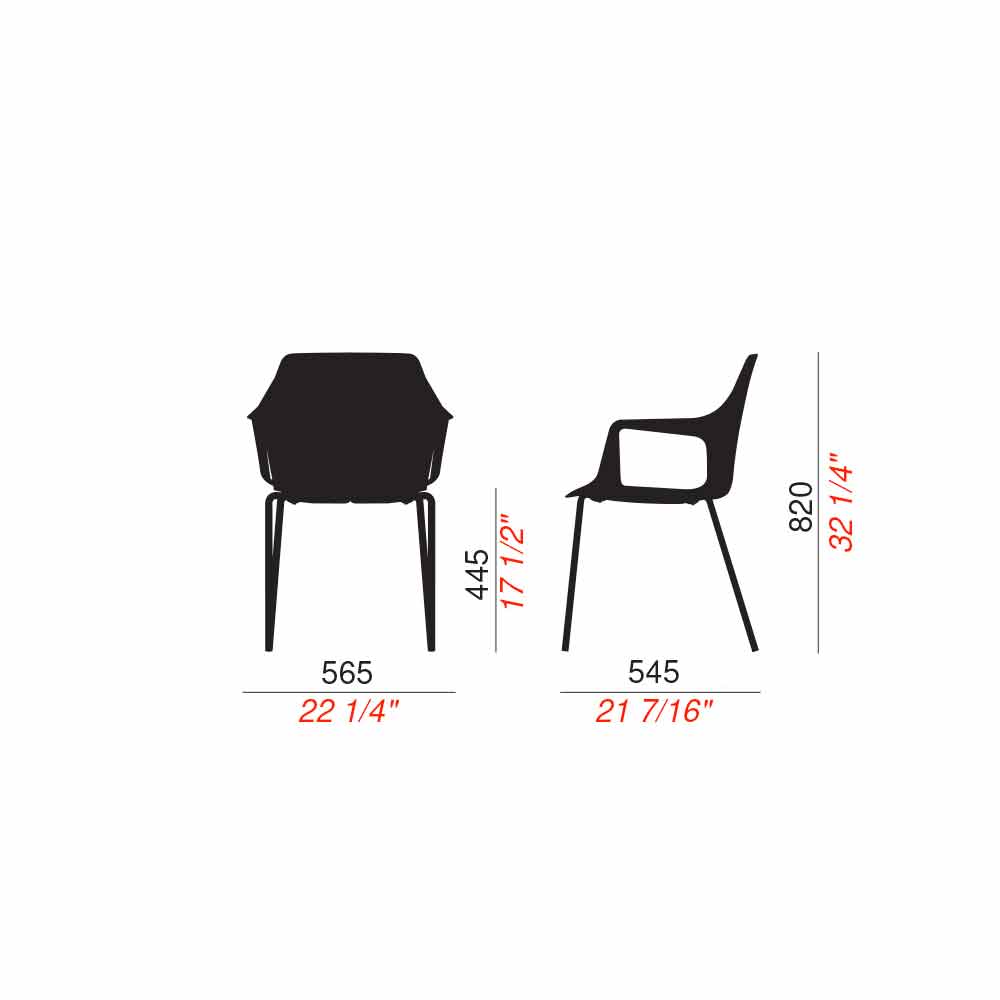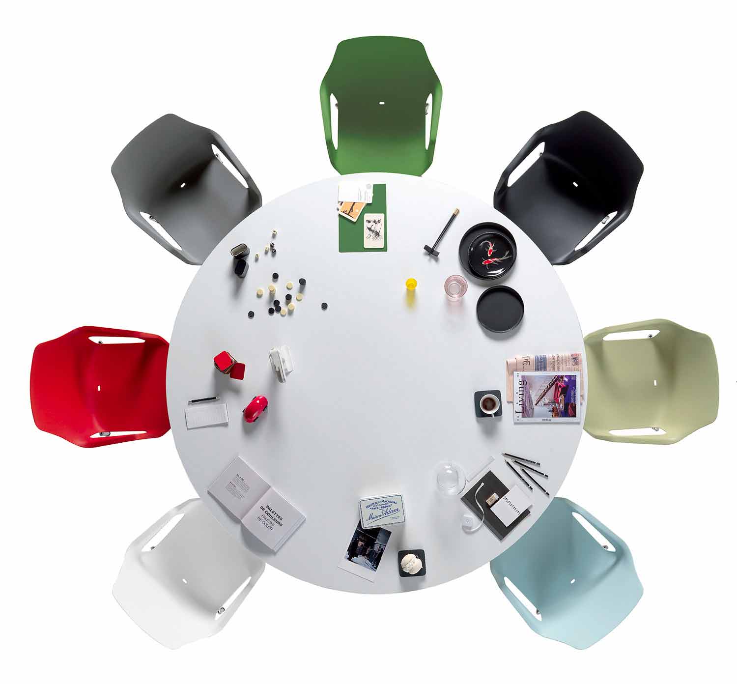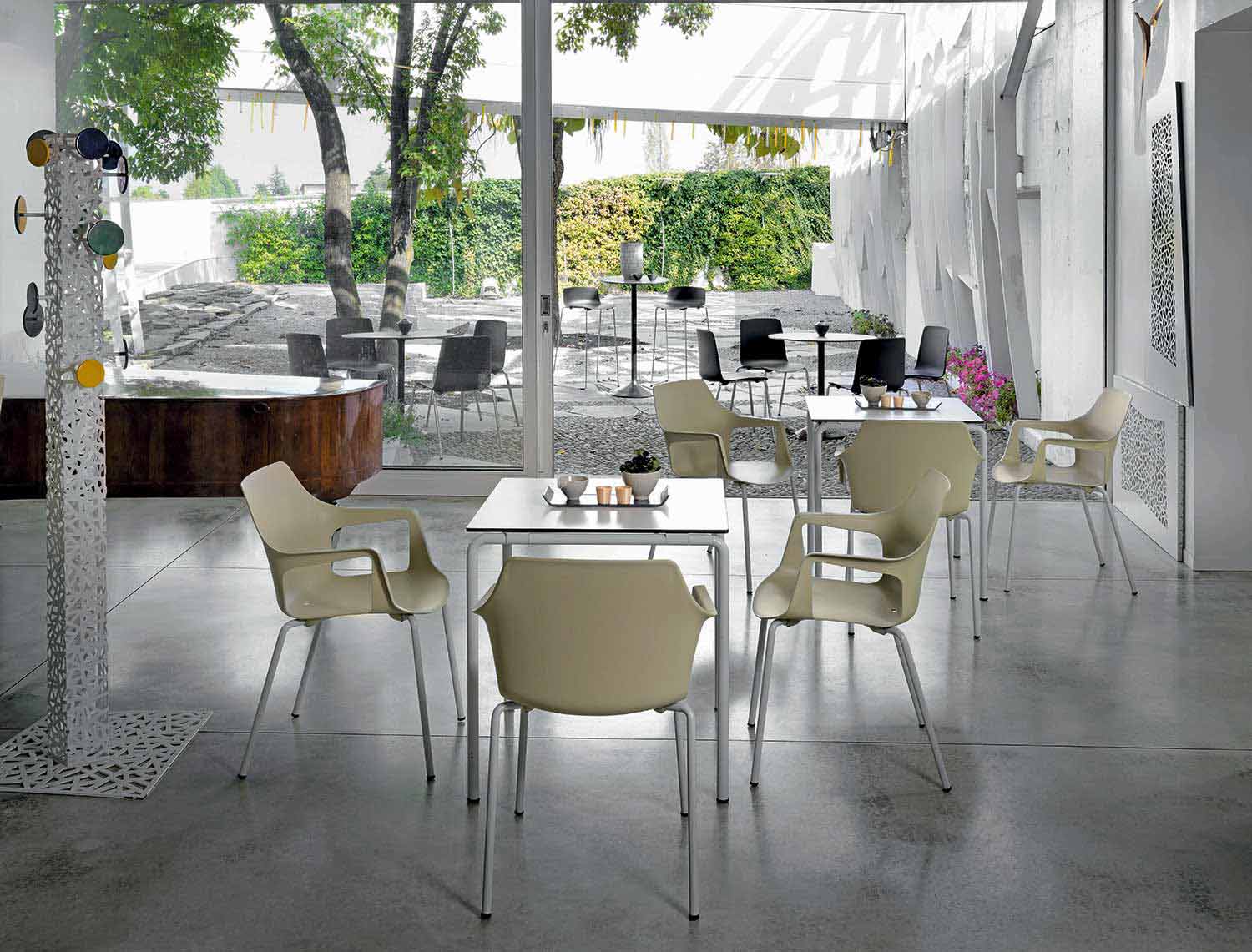 Karrige ngrënieje prej metali dhe polipropileni të stakueshëm me armatim të prodhuar në Itali, 4 copë.