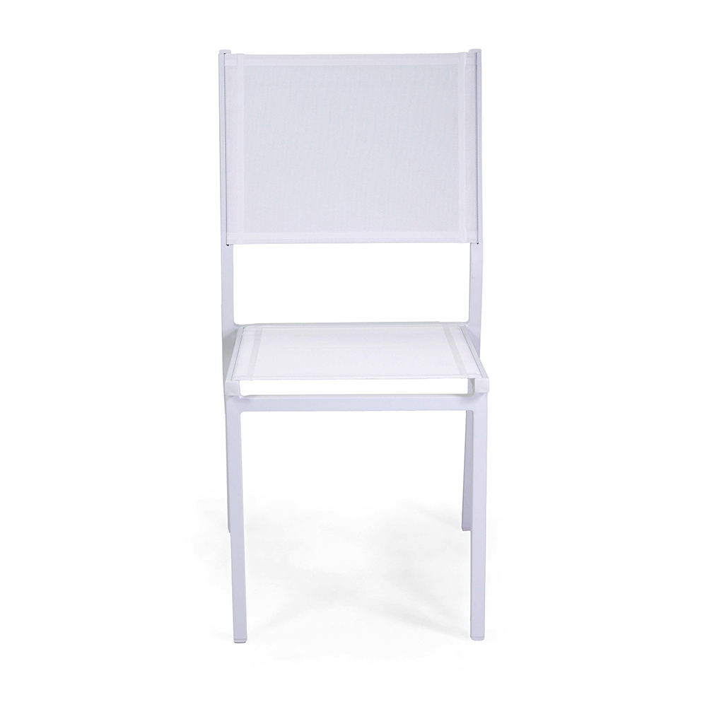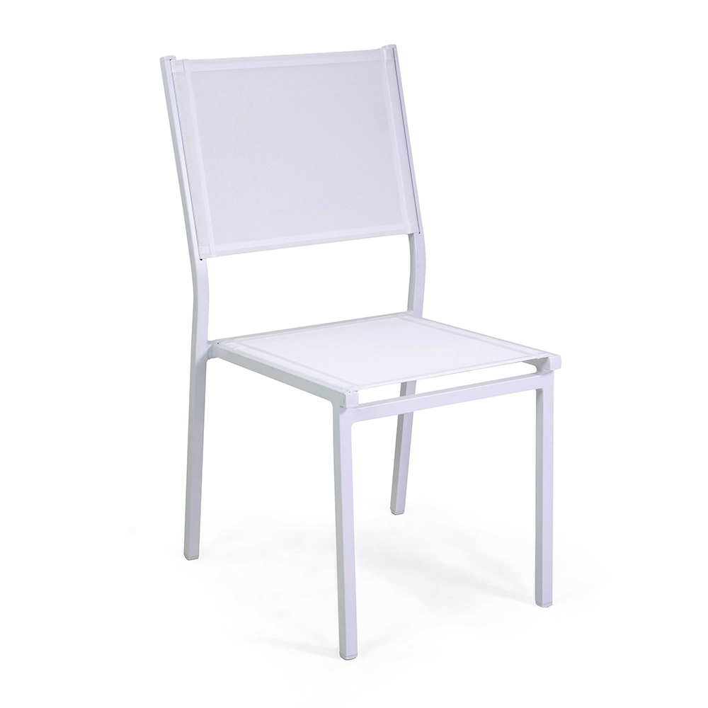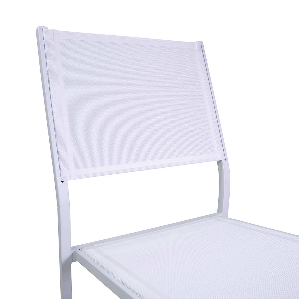 Kjo karrige me një kornizë alumini të veshur me pluhur të bardhë përfaqëson ekuilibrin ideal midis funksionalitetit dhe stilit, perfekte për ambiente të jashtme si kopshte dhe tarraca. Tekstili i bardhë jo vetëm që i jep një pamje moderne dhe elegante, por gjithashtu siguron një ndenjëse të rehatshme dhe rezistente ndaj motit.