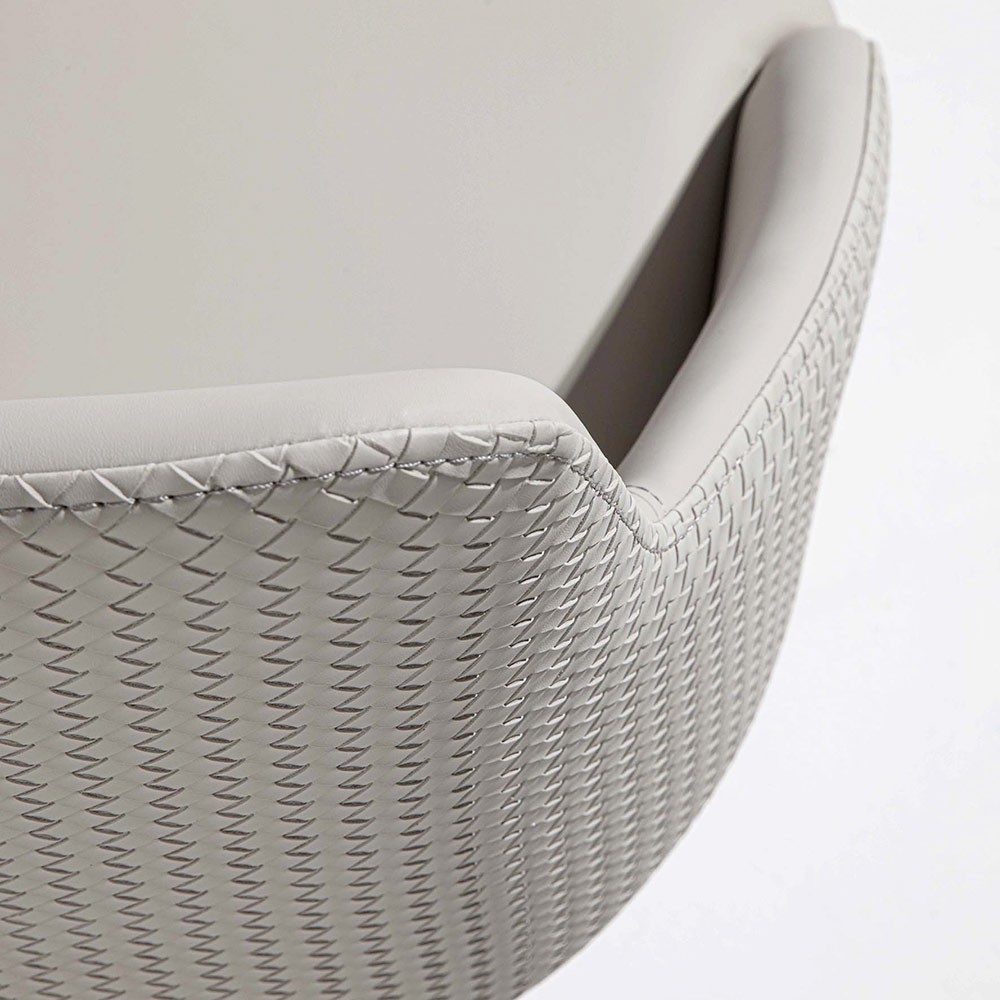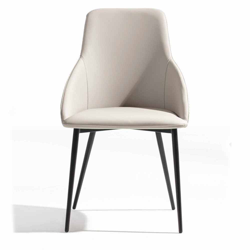 Karrige moderne ideale për dhomën e ngrënies ose kuzhinën me sedilje të mbuluar me eko-lëkurëdhe baza e bërë prej metali të zi të pikturuar . Veçantia e kësaj orendi të mrekullueshme përfaqësohet nga fundi i veçantë i stampuar në pjesën e jashtme të sediljes që pasuron estetikën dhe jep një prekje të sofistikuar . Forma e saj e pazakontë gjithashtu kontribuon në krijimin e një produkti, koncepti i të cilit bazohet në komoditet , elegancë dhe funksionalitet, ndërsa zgjedhja e metalit të pikturuar për ndërtimin e këmbëve e bën gjithçka akoma më moderne dhe inovative, duke lejuar që karriga të përshtatet në mënyrë të patëmetë me çdo stil bashkëkohor mobilimi në të cilën mund të përfaqësojë protagonistin e vërtetë, duke fituar çdo vëmendje.