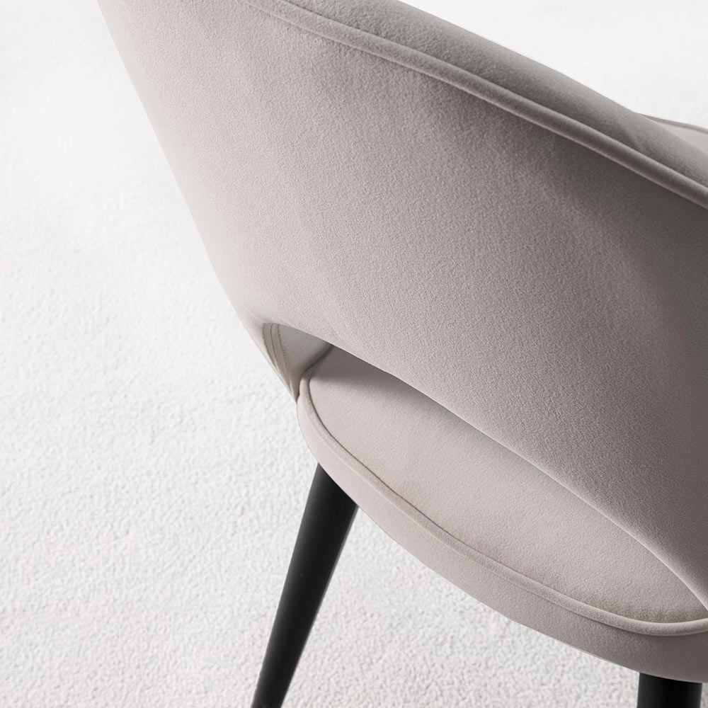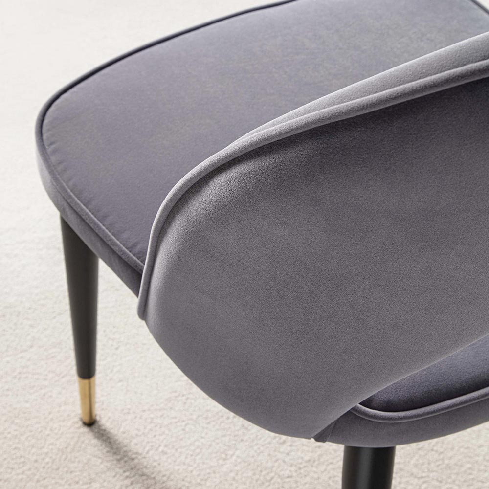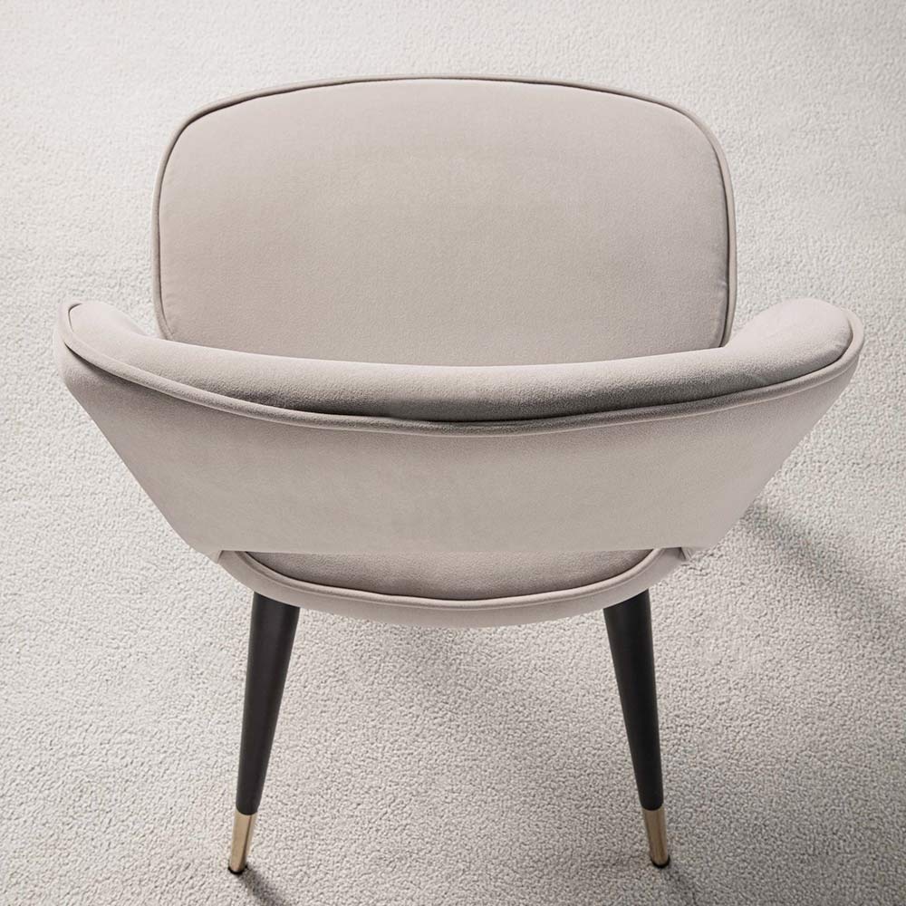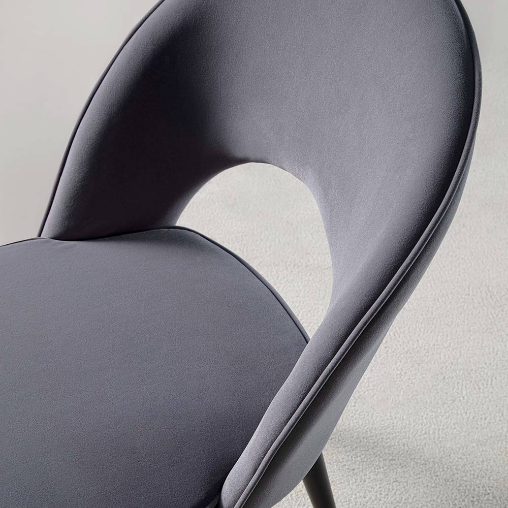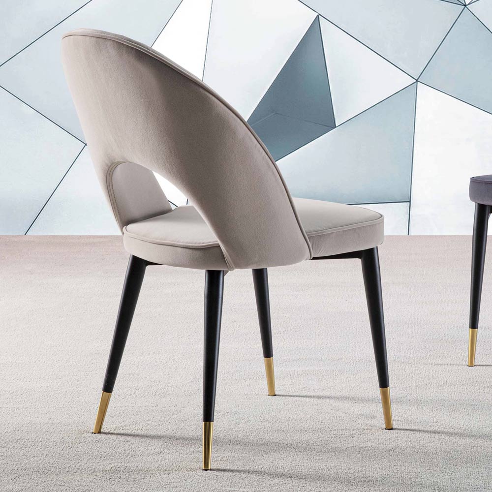 Karrige e veshur me kadife të qëndrueshme ndaj njollave dhe këmbë të bëra prej metali të pikturuar të zi të pasuruar me këmbë prej bronzi saten . Elegance Limitless dallon këtë karrige mrekullueshme me karakteristika enveloping skica e të cilit ka qenë e projektuar për të ofruar një vend të rehatshëm me një stil të rafinuar të aftë për të revolutionizing ndonjë mobilje falë një personalitettë fortë dhe shumë të rafinuar. Përdorimi i kadifeve së bashku me metalin e zi dhe bronzi saten ndihmon në krijimin e një objekti të vërtetë dizajni të aftë të bëhet protagonist i vërtetë i dhomës, duke e bërë estetikën e saj unike.