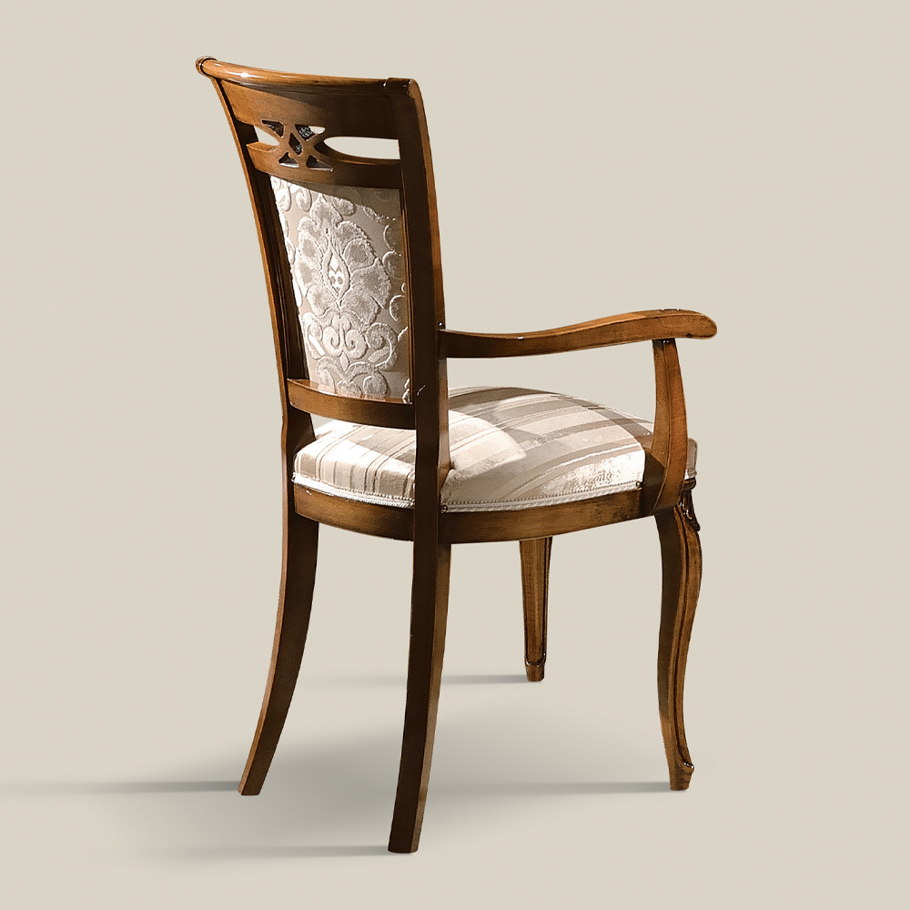 Karrige e dhomës së ngrënies me njëstil klasik të përjetshëm , perfekte për të dekoruar një dhomë ndenjeje, kuzhine ose ngrenie me personalitet dhe elegancë, e disponueshme në versionin Bassano të arrës ose të drurit të bardhë dhe argjend . Kjo karrige ka sedilje dhe mbështetëse të mbushur me pëlhurë dhe për t'iu përshtatur çdo nevoje duke ofruar rehati optimale, si dhe është e mundur të zgjidhni midis versionit me ose pa mbështetëse krahësh. Një komplement unik dhe i rafinuar, i prodhuar tërësisht në Itali dhe nga mjeshtra të aftë , mjeshtër të artit që përfundojnë çdo komplement me mençuri dhe shije për elegancë. Prodhimi kryhet duke përdorur materiale të shkëlqyera , dhe duke kryer punënmedorë me kujdesin dhe profesionalizmin maksimal që i dallon produktet Made in Italy .