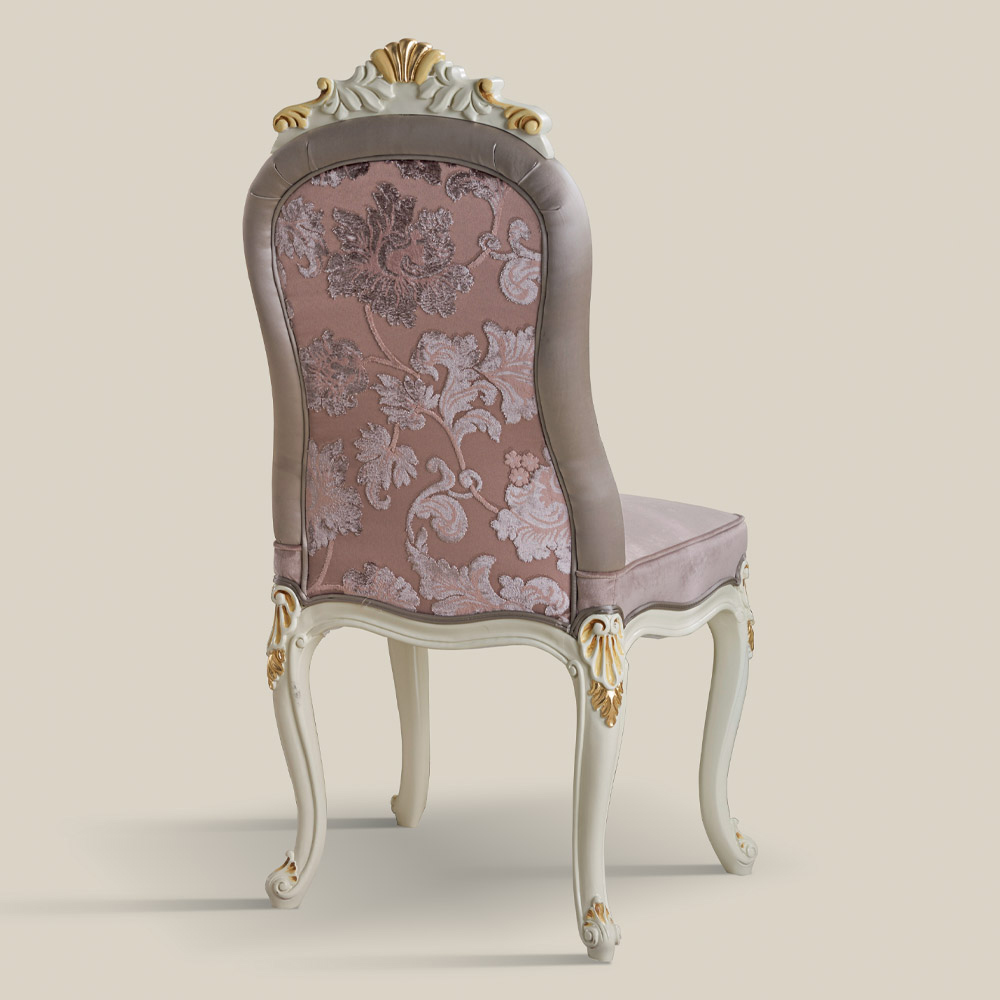Karrige e dhomës së ngrënies me një stil klasik të përjetshëm, perfekte për të dekoruar dhomën e ndenjes, kuzhinës apo ngrënies me klas dhe elegancë. Kjo karrige ka një strukturë prej druri të bardhë dhe ari, ndërsa sedilja ka një sedilje të mbushur dhe mbështetëse të mbuluar me pëlhurë, dhe një mbështjellje shumë elegante në fund të mbështetëses. Është gjithashtu e mundur të zgjidhni midis versionit me ose pa mbështetëse krahu. Një komplement unik dhe i rafinuar, i bërë tërësisht në Itali nga mjeshtra të aftë , mjeshtër të artit që përfundojnë çdo komplement me mençuri dhe shije për elegancë. Prodhimi kryhet duke përdorur materiale të shkëlqyera , dhe duke kryer punënmedorë me kujdesin dhe profesionalizmin maksimal që i dallon produktet Made in Italy .