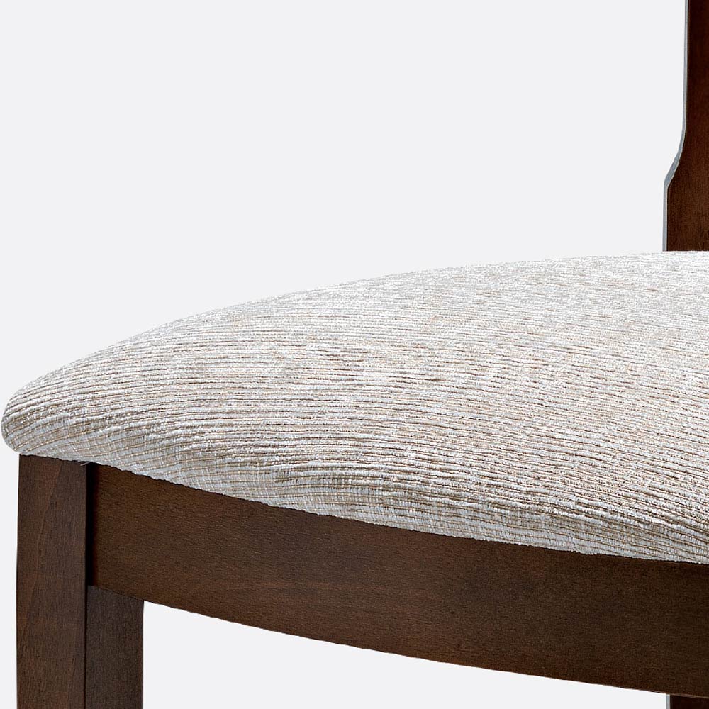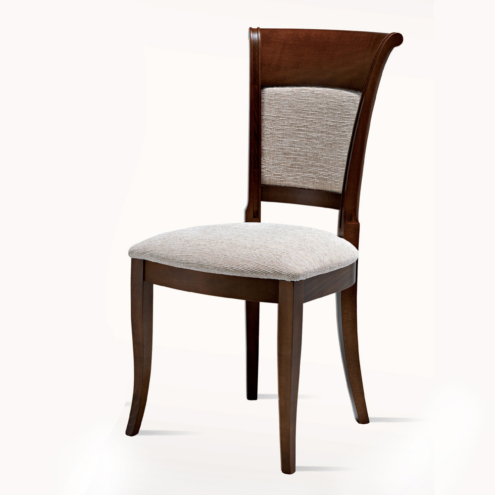 Kjo karrige kuzhine është prodhuar në Itali me një strukturë rezistente prej druri ahu e disponueshme në përfundime të ndryshme me një dizajn jashtëzakonisht elegant dhe të këndshëm, me ose pa mbështetëse krahu. Sedilja e rehatshme dhe mikpritëse është prej pëlhure që përputhet me futjen në mbështetësen, për të siguruar rehati maksimale duke garantuar një shije të lartë estetike.