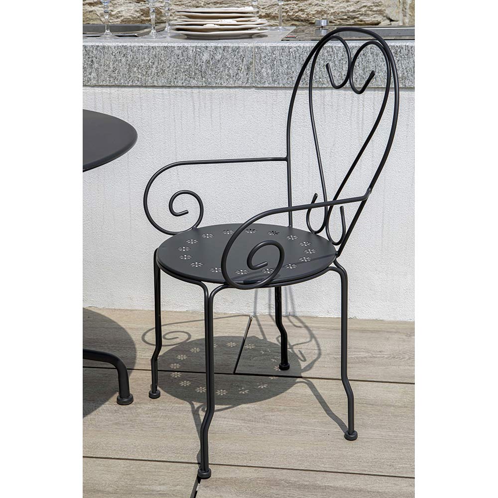 Kolltuku është prej metali rezistent ndaj motit , ideal për të shijuar momente relaksi në kopsht, në tarracë ose në një cep komod të oborrit tuaj. Vëmendja ndaj detajeve dhe përfundimi e bëjnë këtë kolltuk të gjithanshëm dhe të përshtatshëm për stile të ndryshme dekorimi, nga ato më klasiket dhe romantiket deri tek ato moderne dhe minimaliste.