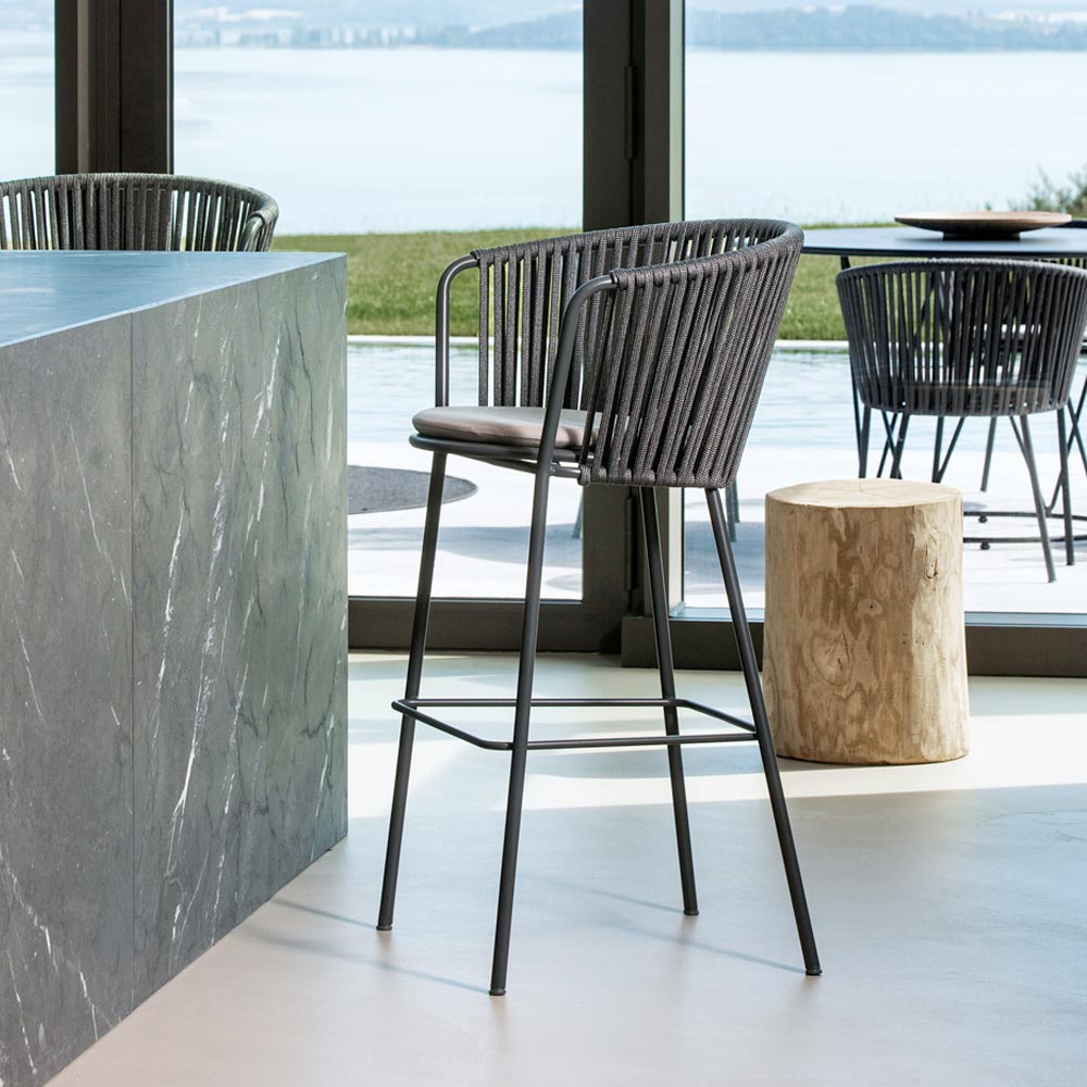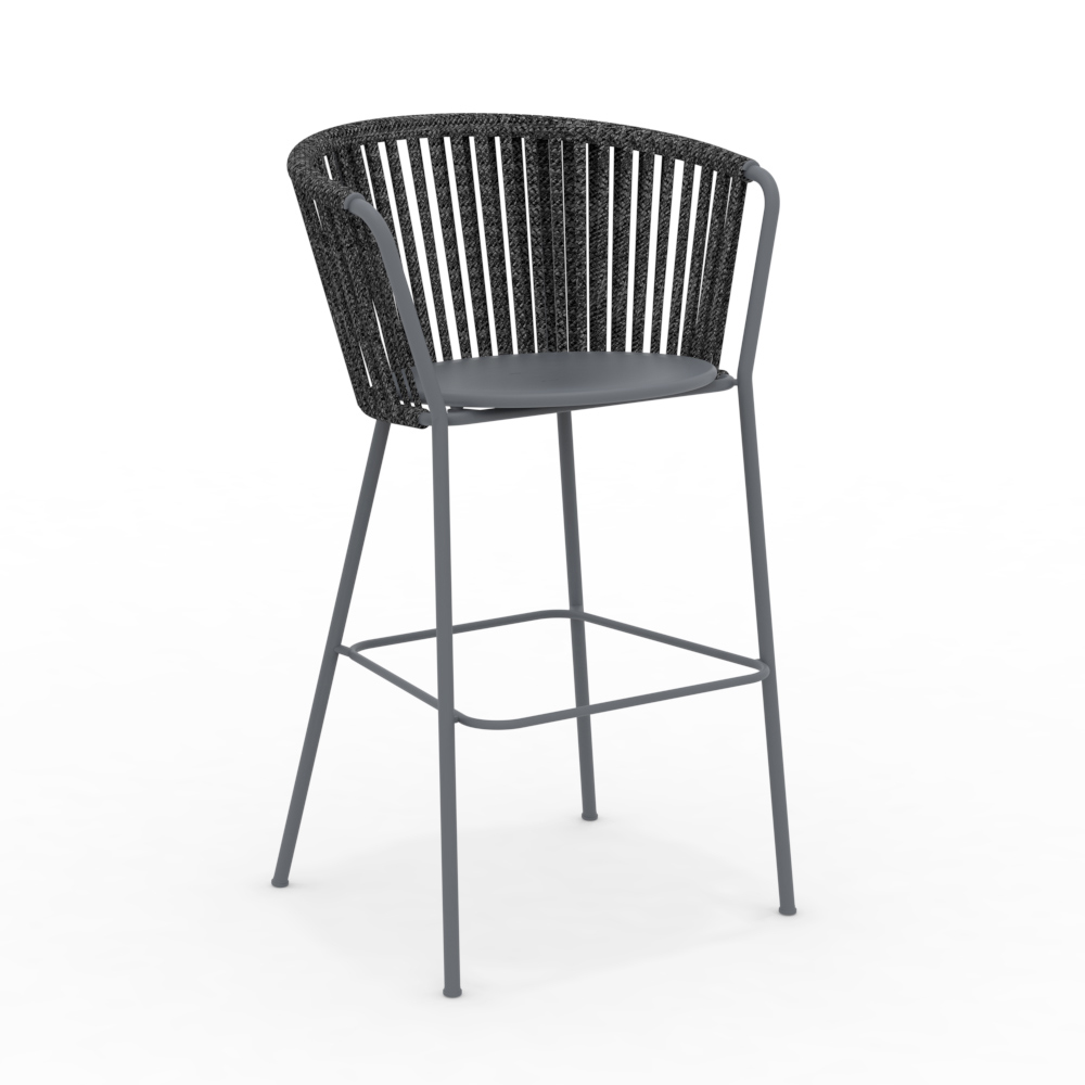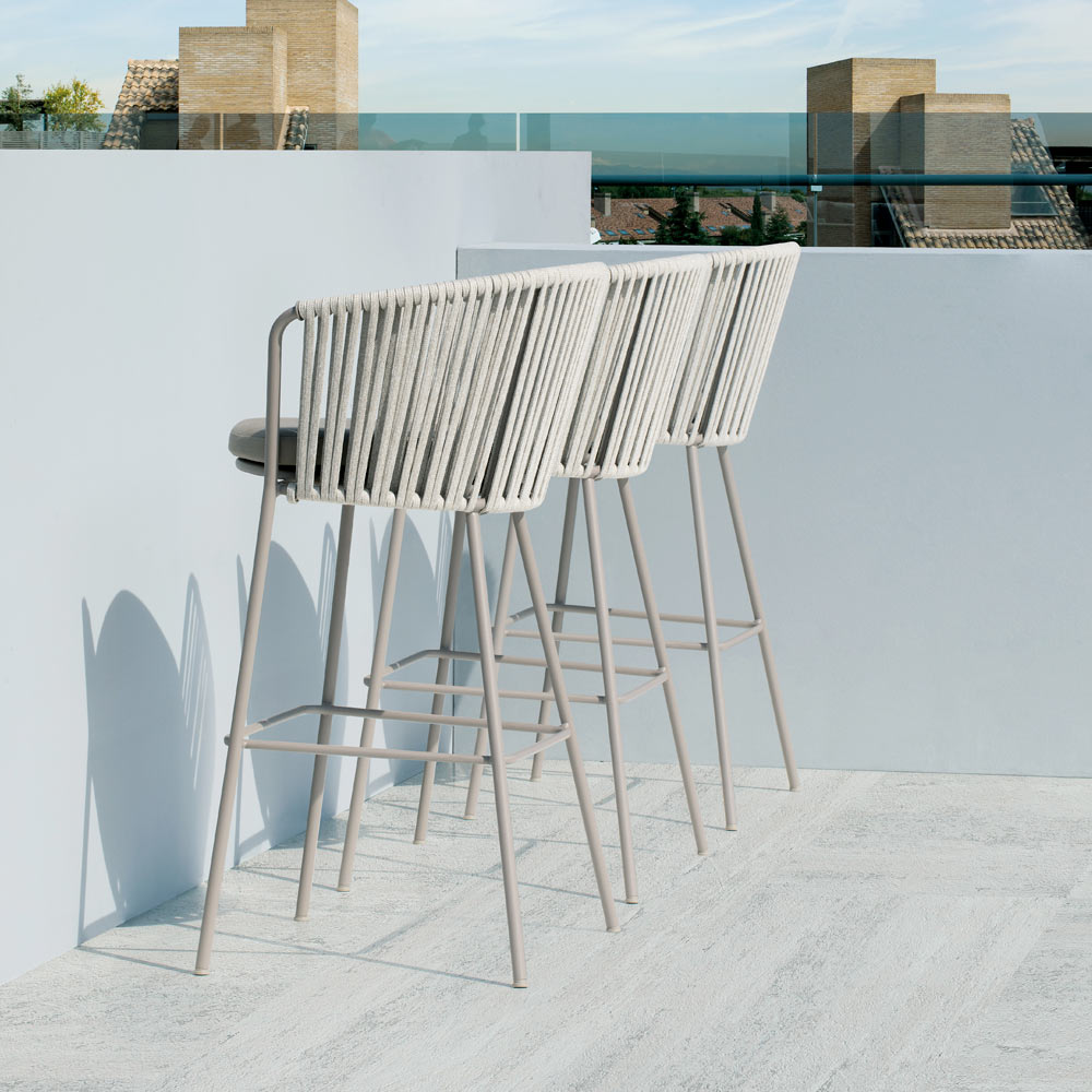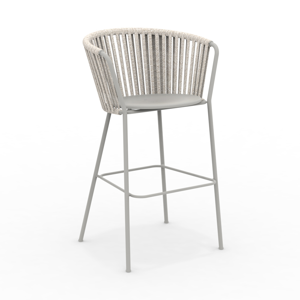 Struktura prej çeliku inox garanton soliditet dhe rezistencë ndaj agjentëve atmosferikë, ndërsa endja e litarit i jep një prekje lehtësie dhe rafinimi, duke e mbështjellë sediljen në një përqafim të rehatshëm. Dizajni ergonomik dhe linjat e rrumbullakosura sigurojnë një përvojë të këndshme dhe relaksuese uljeje.