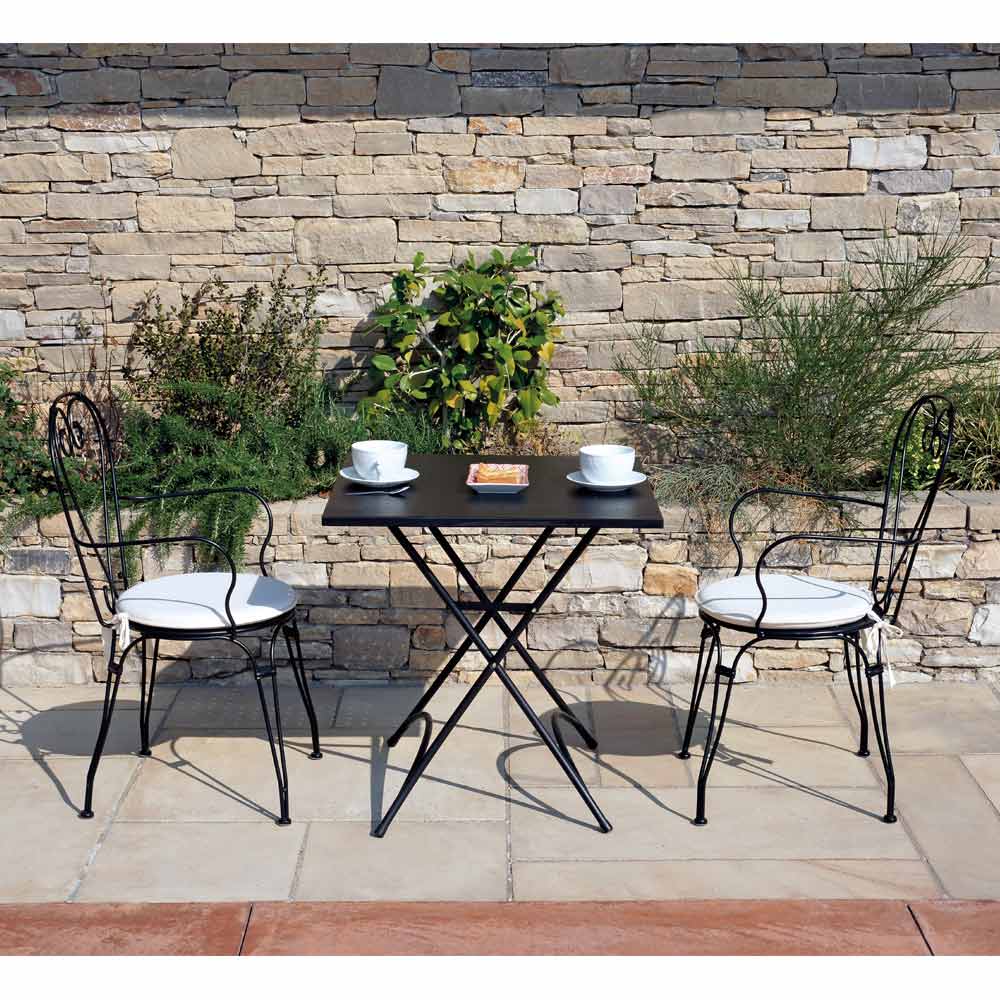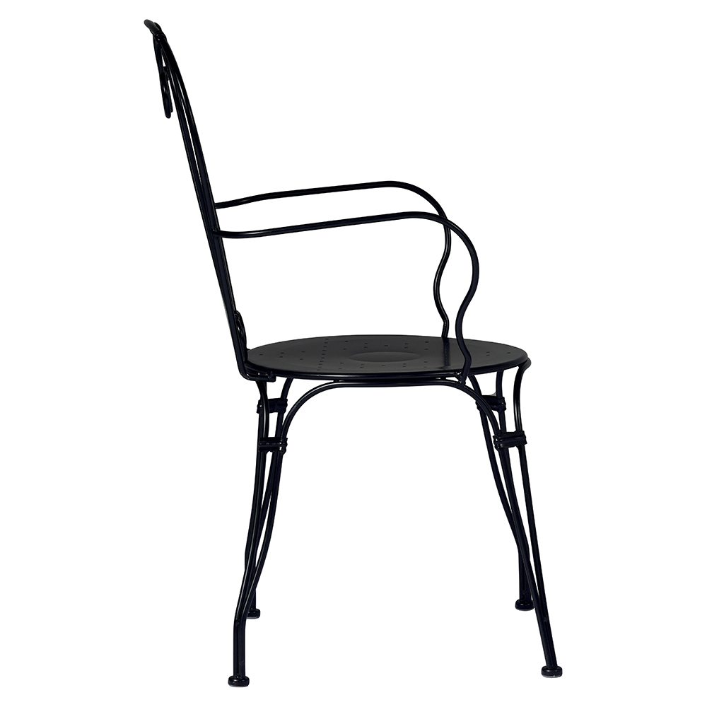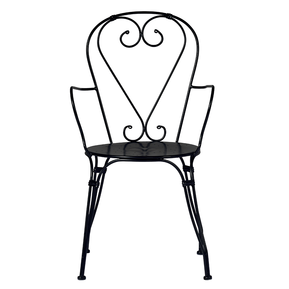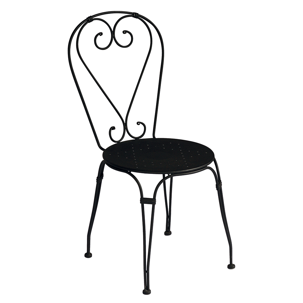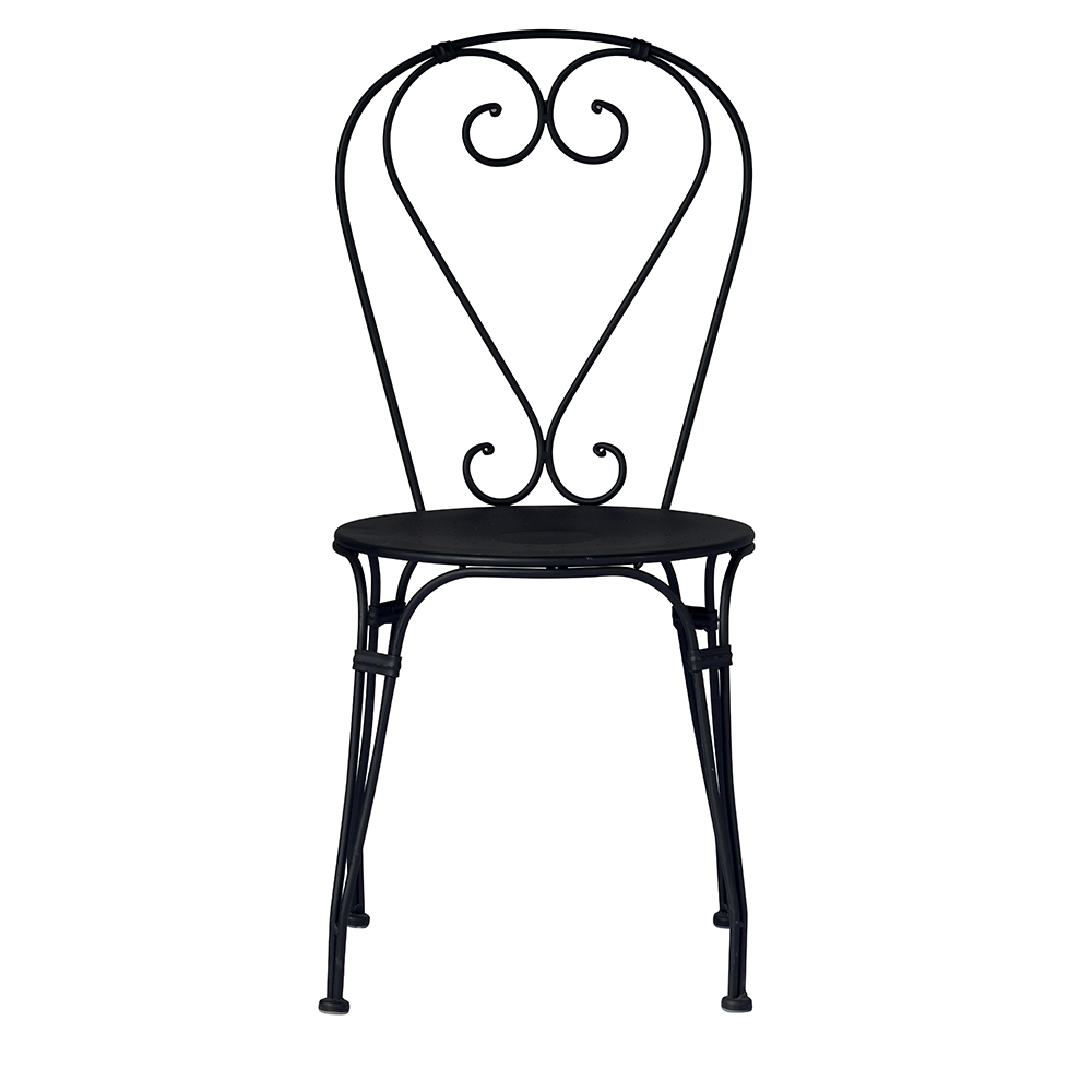 Karrige e jashtme e stivosur me ndenjëse dhe strukturë prej hekuri të lyer me ngjyrë të zezë me trajtim kundër ndryshkut . Karrigia e kopshtit karakterizohet nga dizajni në formë zemre melinja të thjeshta dhe forma të matura që e bëjnë atë veçanërisht të gjithanshëm falë madhësisë së vogël, lehtësisë dhe menaxhueshmërisë së strukturës së saj.
