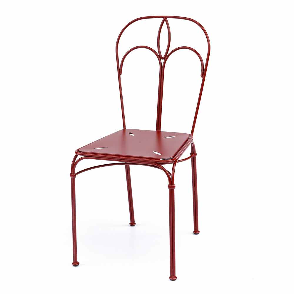 Karrige në natyrë me një dizajn të thjeshtë dhe të gjithanshëm të bërë tërësisht në Italime strukturë hekuri të pikturuar me të kuqe dhe jastëk (të lëvizshëm) për sediljen në pëlhurë akrilike të përfunduar me ecru. Një zgjidhje mobilimi për ambiente të jashtme me linja të matura dhe elegante karakterizohen nga një dizajn që frymëzohet nga zemërmirësia e viteve të zhurmshme. Format e hollë dhe të gjithanshme i japin produktit një ndjenjë të mrekullueshme lehtësie të aftë për të pasuruar çdo hapësirë të jashtme me një prekje ekskluzive. Jastëku gjithashtu ofron një vend të rehatshëm dhe mikpritës të aftë për të rritur anën funksionale të karriges. Për të siguruar një produkt me cilësi të lartë janë materialet e çmuara të zgjedhura, mjeshtëria 100% italiane dhe galvanizimi i nxehtë , i cili përfaqëson trajtimin më efektiv kundër çdo lloj korrozioni të hekurit, nga ai për shkak të kripës në atë të shkaktuar nga aciditeti i shirave, pra duke ofruar një mobilje jashtëzakonisht rezistente, perfekte për tu përshtatur me çdo hapësirë të jashtme dhe çdo kusht klimatik.
