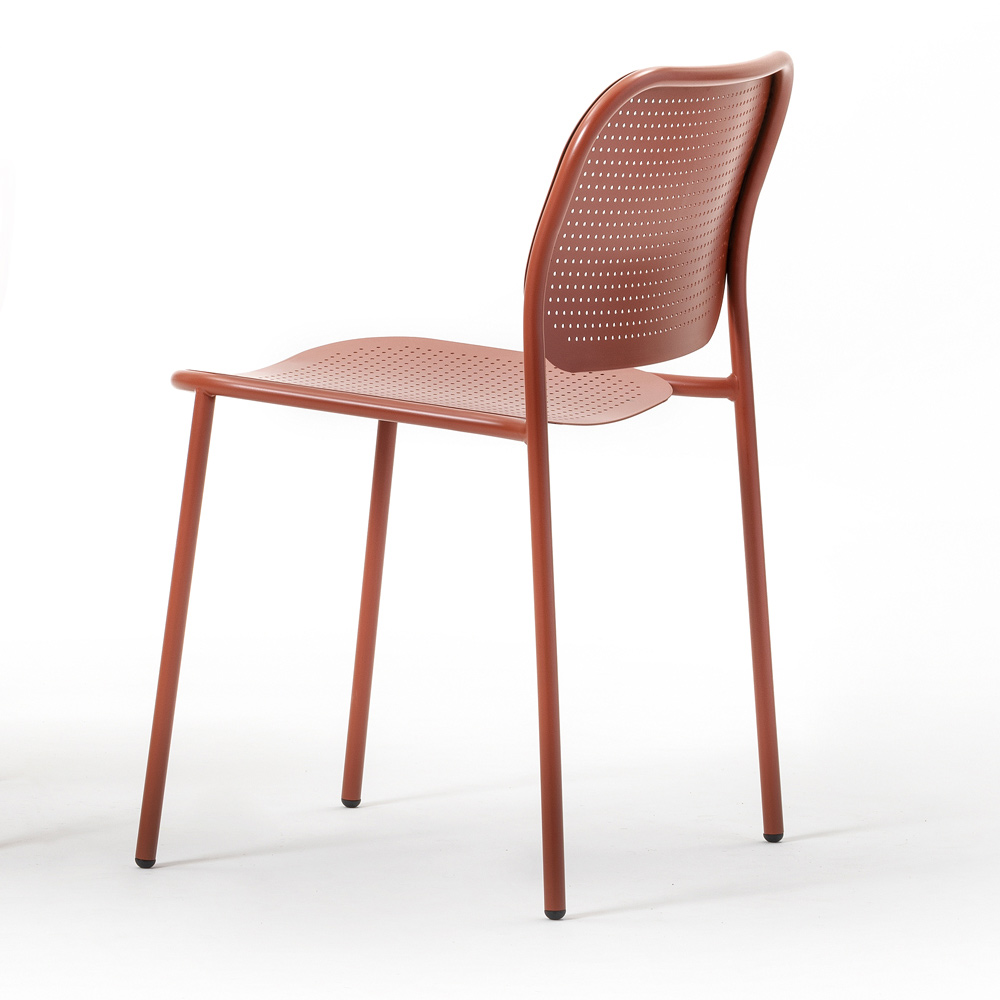 Karrige kopshti me strukturë të bërë nga tub metalik të lyer, i kompletuar nga sedilja dhe mbrapa me fletë metalike të shpuar , një efekt që riviziton thurjen klasike vjeneze në një çelës bashkëkohor. Një pjesë e mobiljeve që vjen nga një proces prodhimi 100% Made in Italy nëpërmjet përdorimit të lëndëve të para me cilësi të lartë që ofrojnë një rezultat solid dhe rezistent .