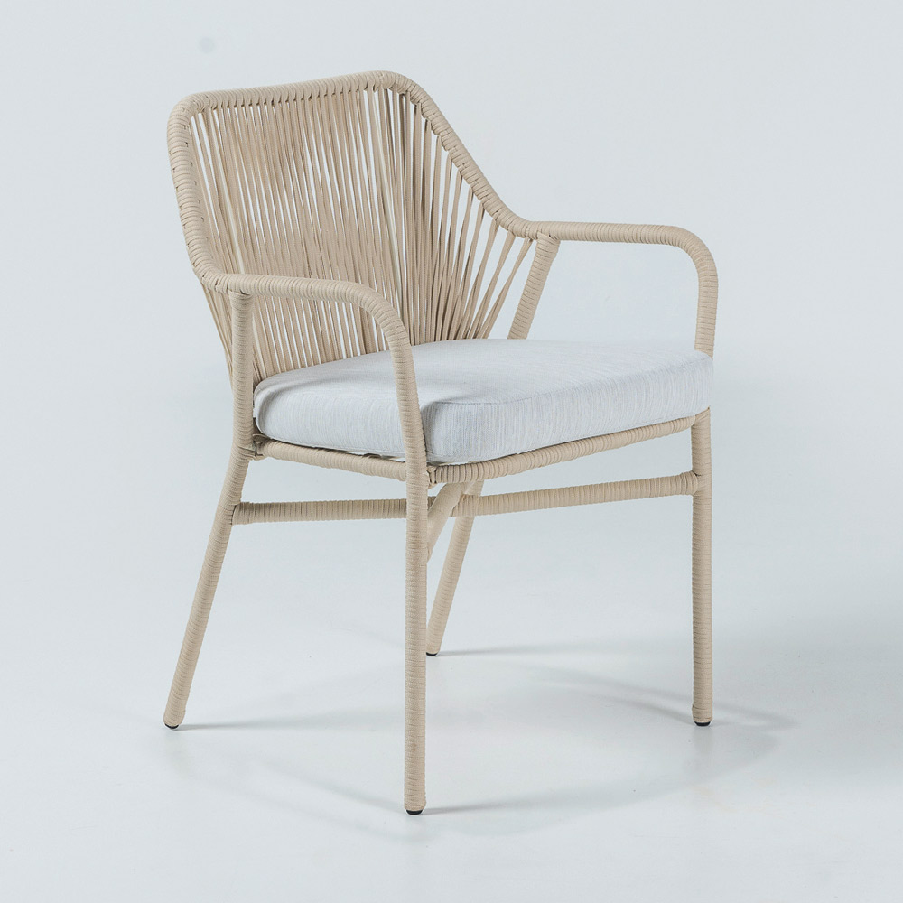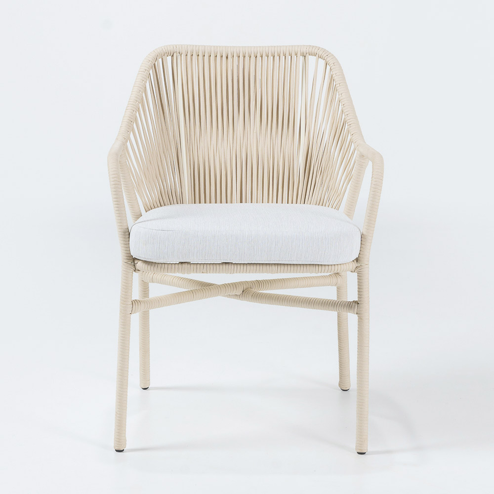 Kolltuk për jashtë i bërë me kornizë alumini, endje Olefin/PP ROPE dhe jastëk sediljeje në olefinë në ngjyrën "off white".