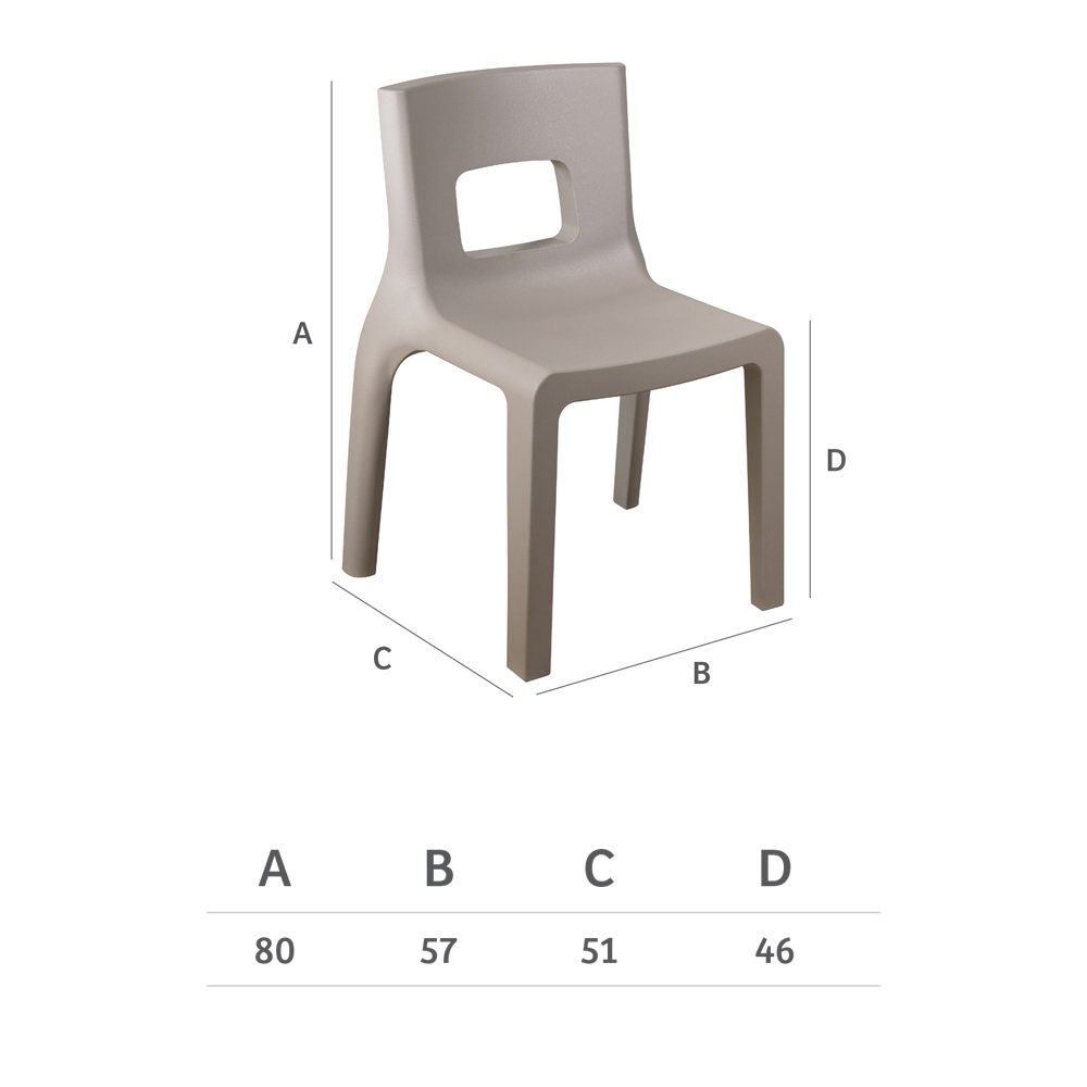 Karrige kuzhine e stivosur nga polietilenipër përdorim të jashtëm dhe të brendshëm tërësisht Prodhuar në Itali . Karrigia ofron një ndenjëse veçanërisht të këndshme me rehati të fortë si dhe një stil të thjeshtë por tërheqës që sjell harmoni në mjedis, duke transformuar si hapësirat e jashtme ashtu edhe ato shtëpiake.
