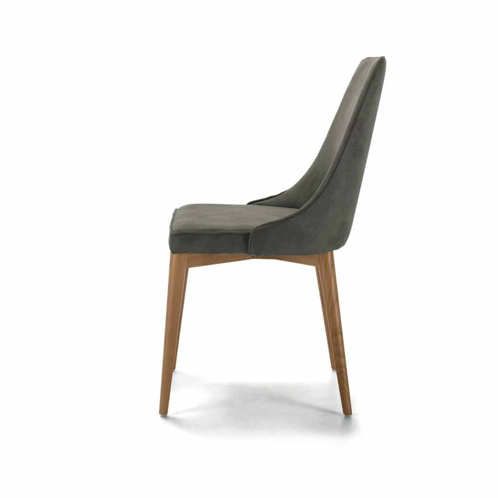 Karrige kuzhine e cilësisë së lartë me bazë druri hiri dhe sedilje e veshur me susta në eko-lëkurë ose kadife; punuar me dorë në Itali.