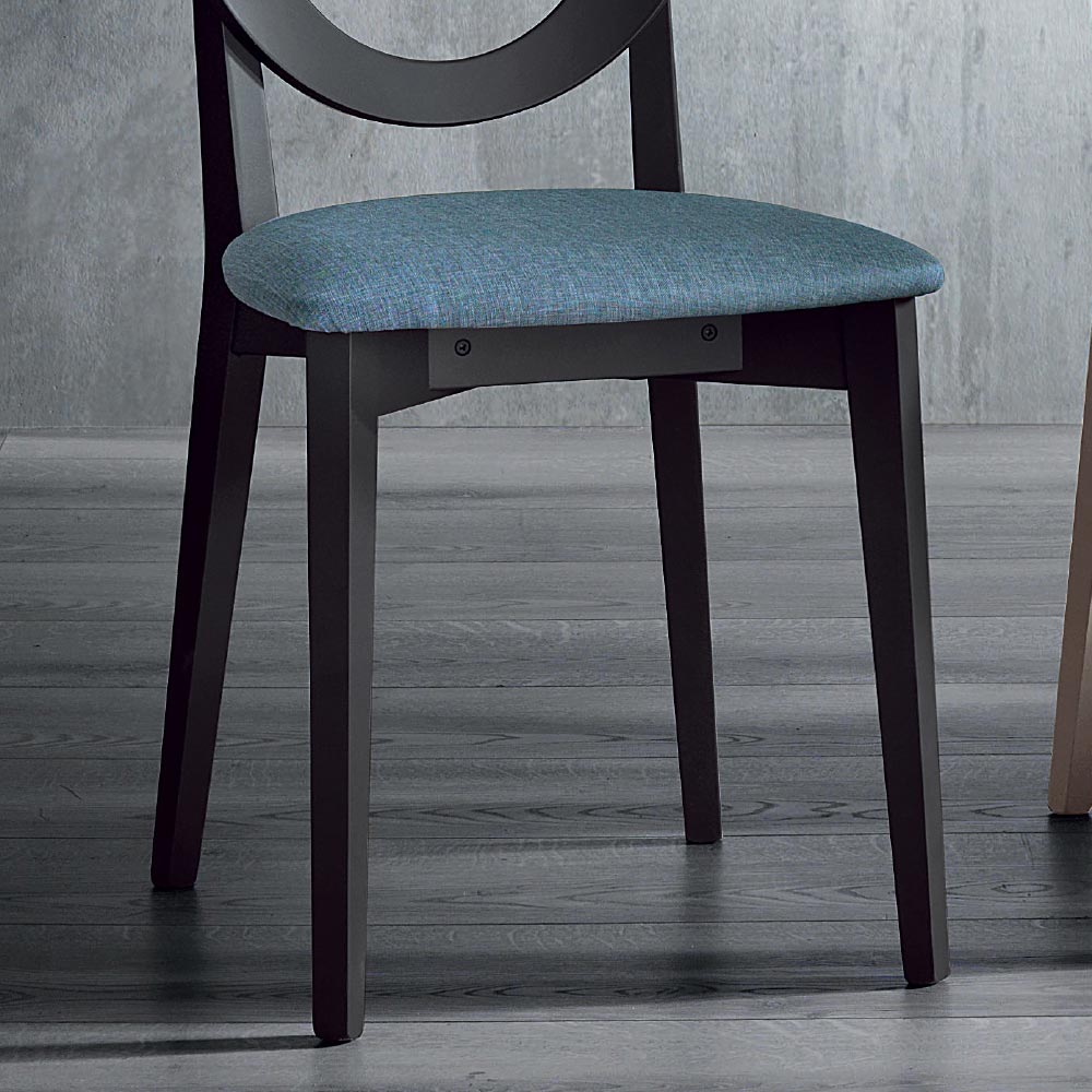 Karrigia e kuzhinës është e punuar me një strukturë të fortë druri ahu e disponueshme në përfundime të ndryshme me sedilje pëlhure. Struktura moderne dhe komode i jep jetë një dizajni harmonik që karakterizohet nga mbështetësja rrethore e shpinës, duke i dhënë lehtësi vizuale duke krijuar një humor jashtëzakonisht të gjithanshëm. Kështu, karrigia përshtatet me ambiente të ndryshme, me një elegancë thelbësore.
