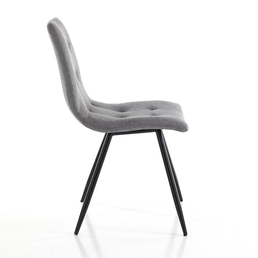 Karrige e kuzhinës ose e dhomës së ngrënies me këmbë prej metali të lyer me ngjyrë të zezë mat dhe ndenjëse e mbushur me pëlhurë gri . Kombinohet në mënyrë perfekte me të gjitha stilet e mobiljeve moderne, nga më minimalet tek ato më të rafinuara, duke i dhënë elegancë dhomës pa hequr sytë nga tavolina e ngrënies e cila përfaqëson pikën qendrore të ambientit, por duke krijuar së bashku me të një harmoni të mrekullueshme stilesh. për një rezultat origjinal, të rafinuar dhe me një personalitet të fortë modern .
