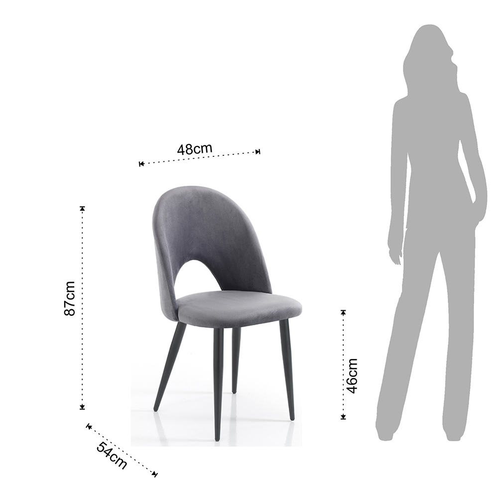 Karrige kuzhine me strukturë prej metali të lyer me ngjyrë të zezë mat dhe sedilje e mbushur me pëlhurë me efekt kadife . Një dizajn thelbësor por me një ndikim të fortë vizual falë efektit të mrekullueshëm të krijuar nga veshja që i jep produktit të gjithë personalitetin e tij elegant dhe të rafinuar . Kombinimi perfekt me veshjen mat të këmbëve i jep jetë një karrigeje të veçantë, perfekte për kompletimin e çdo situate arredimi në ambiente shtëpiake si kuzhina apo dhoma ngrënie, por edhe në hapësira me kontratë si bare dhe restorante.